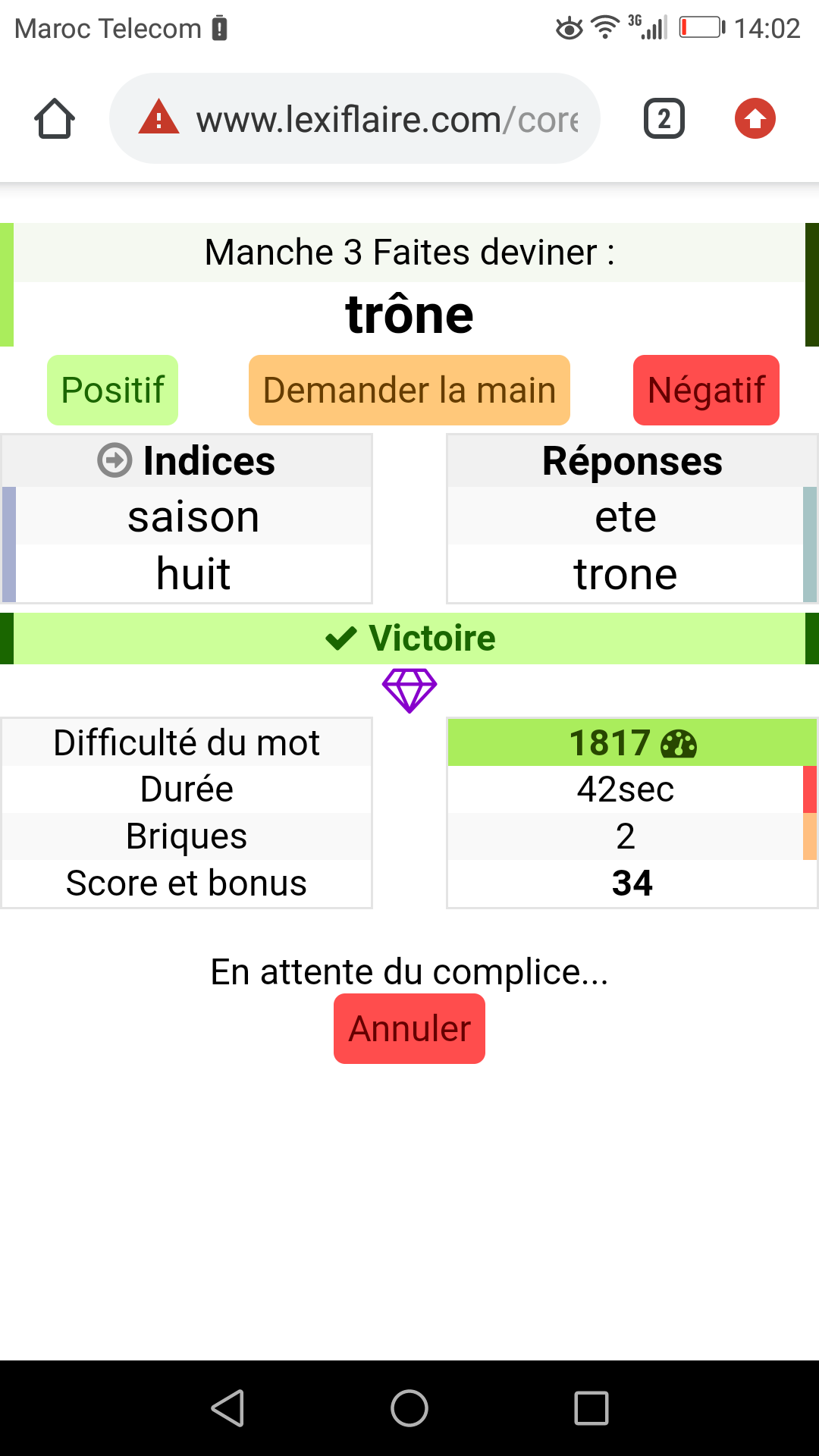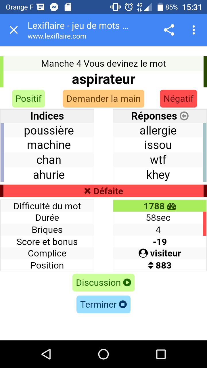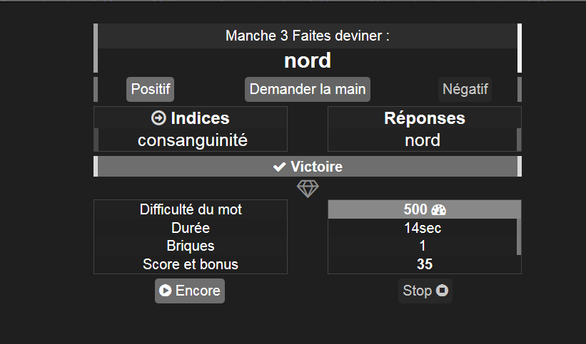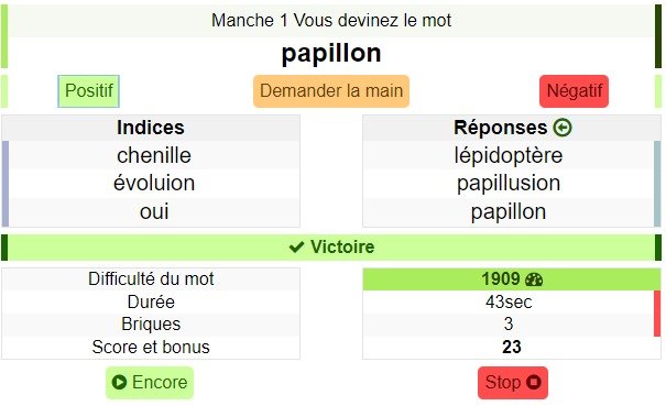 Je viens de tomber avec un khey qui répondait ruquier dès qu'il trouvait pas , on a tout gagné et on est resté pendant 2min à spam les boutons "Positifs" et "Négatifs" pour faire de la musique, MANIFESTE TOI BORDEL