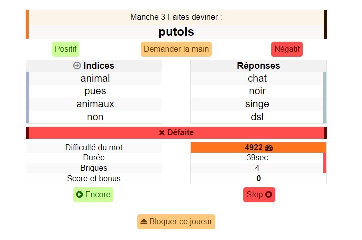 Le 15 mai 2019 à 17:21:05 Toussaint-l a écrit :C'est de la merde, il suffit d'ecrire le mot en anglais pour faire deviner