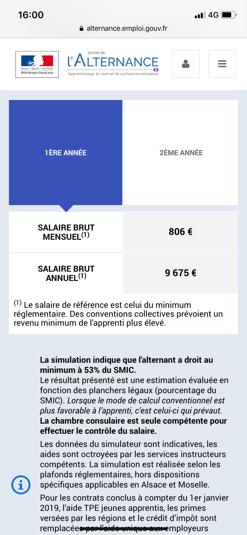 Selon le site officiel de l’alternance, à 53% du smic tu touches 806€ brut.