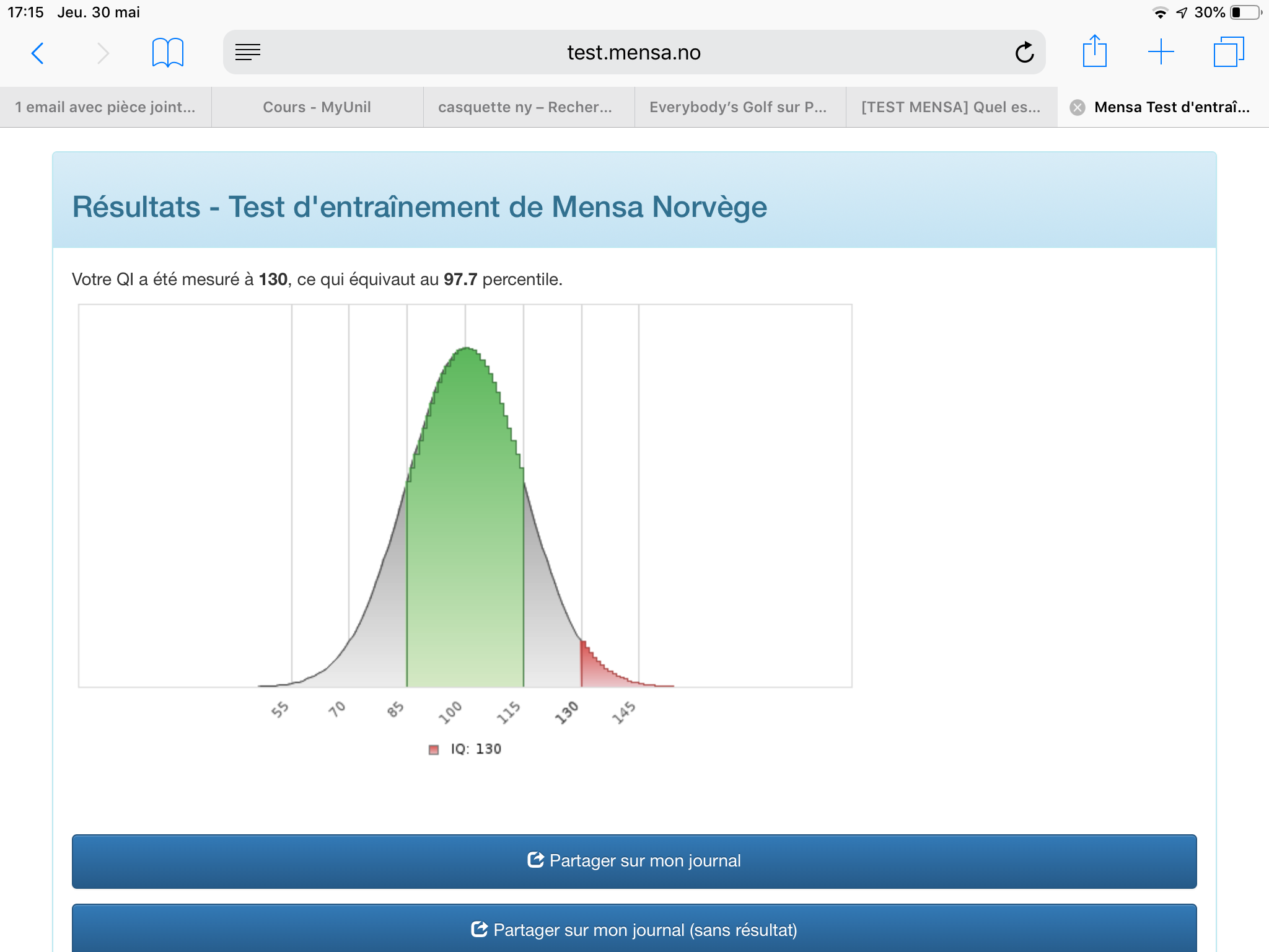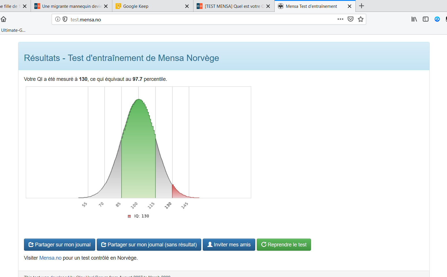 Après j'ai déjà fait des tests de QI avant donc je sais comment ça fonctionne, donc je suppose que le résultat est un peu biaisé