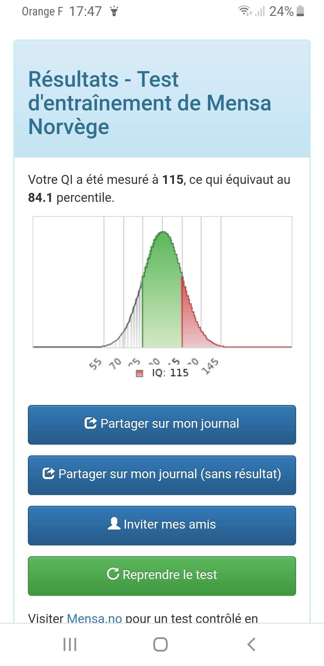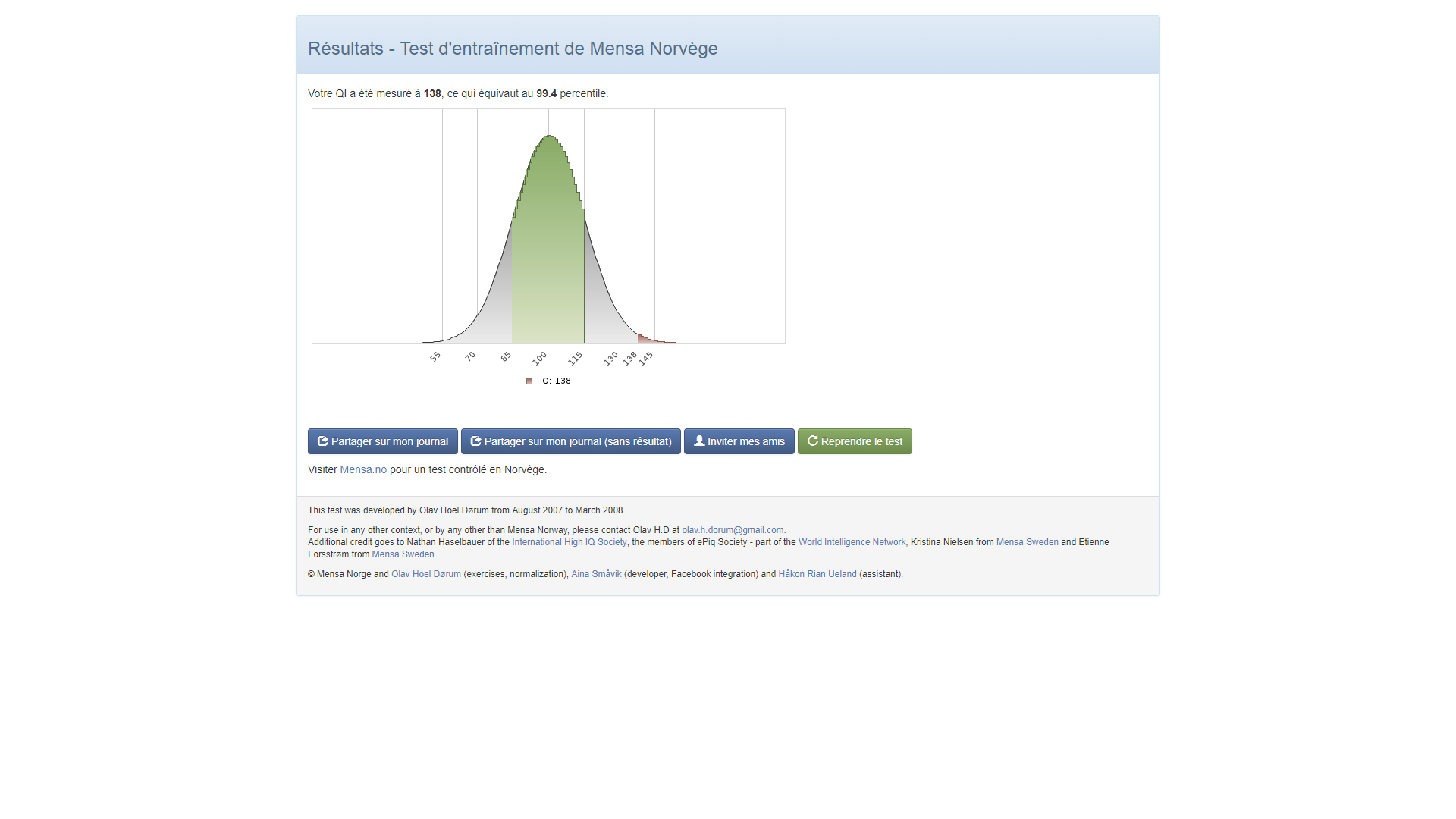 J'ai eu 138, je pense bientĂŽt faire un test, je suis clairement chelou.
