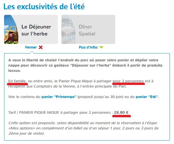 Bordel l'option Déjeuner sur l'herbe à 30 balles : https://www.futuroscope.com/uploads/files/De%CC%81jeuner%20sur%20l'herbe%20Printemps-FR%202019.pdf