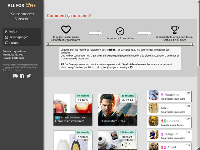 par contre l'année dernière j'allais sur all for one ... mais ça a fermé les deux personnes derrière était trop généreuse et ça a pas suivi ... surtout que via des bugs ou autre certains membres abusaient .