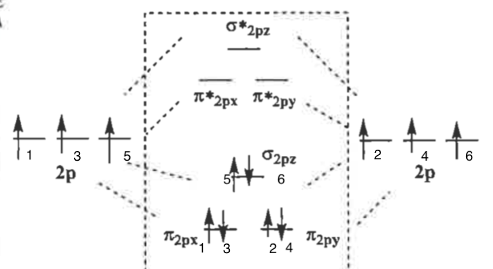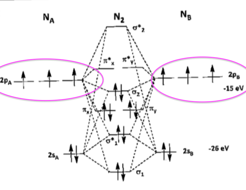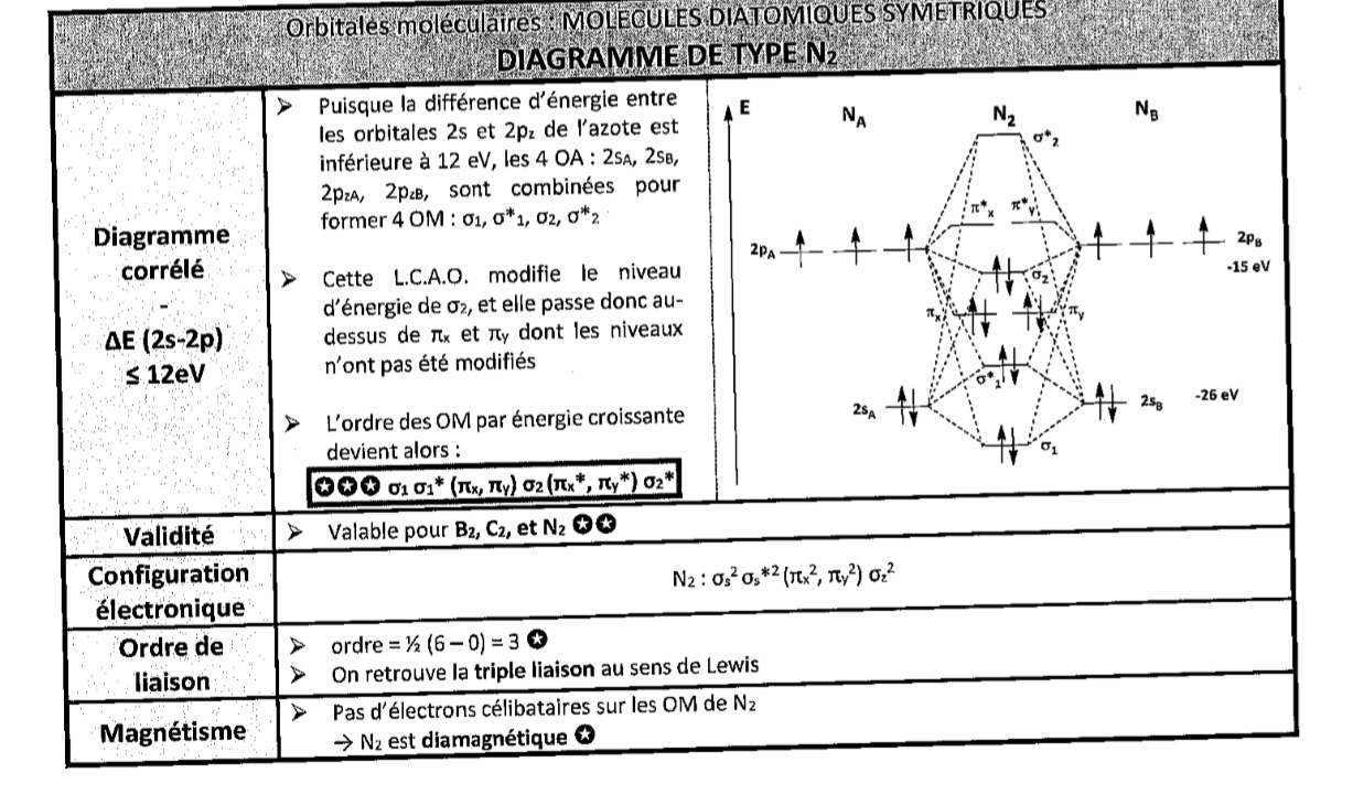 ah si, c'est par rapport à la config électronique de N2 donnée plus bas, en fait il faut seulement utiliser les 3 dernières : pi x, pi y et sigma z !