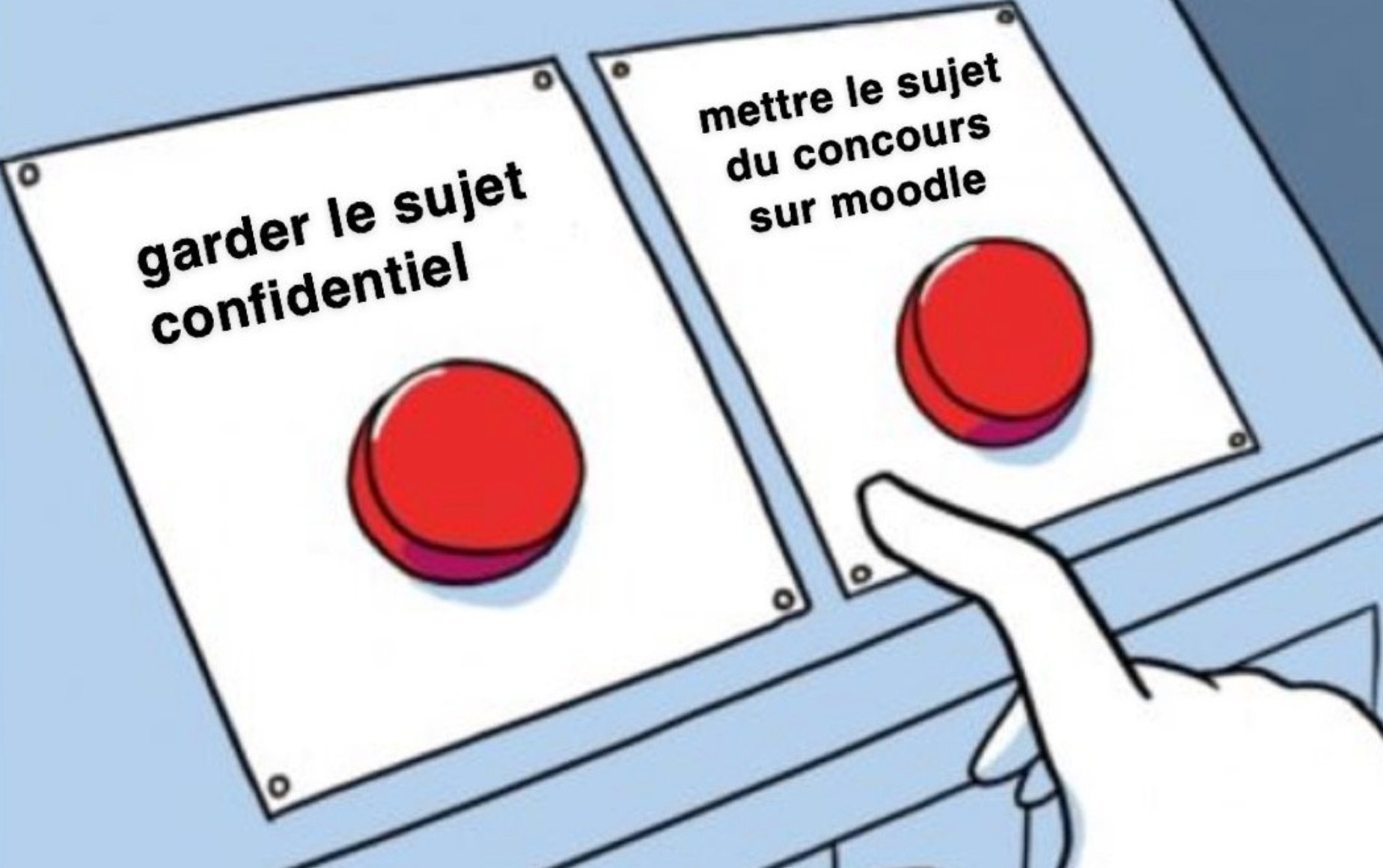 Le 08 janvier 2020 à 21:34:15 Sauce6 a écrit : LES PROFS QUI METTENT LE SUJET DE CHIMIE SUR MOODLE 1 MOIS AVANT LE CONCOURS DUCOUP ON DOIT REPASSER VENDREDI APREM )))))
