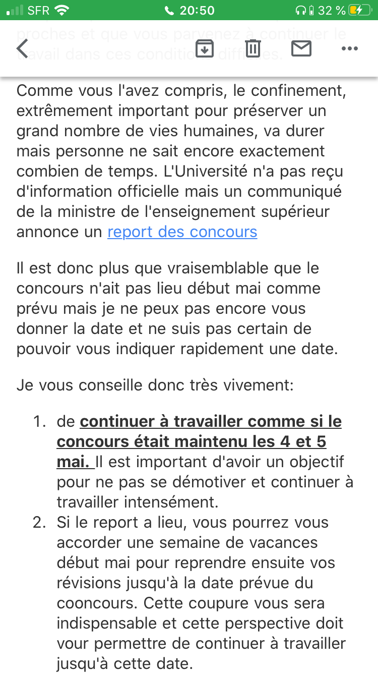 Mon prof son mail est trop bizarre. On a l’impression qu’il va pas reporter le concours