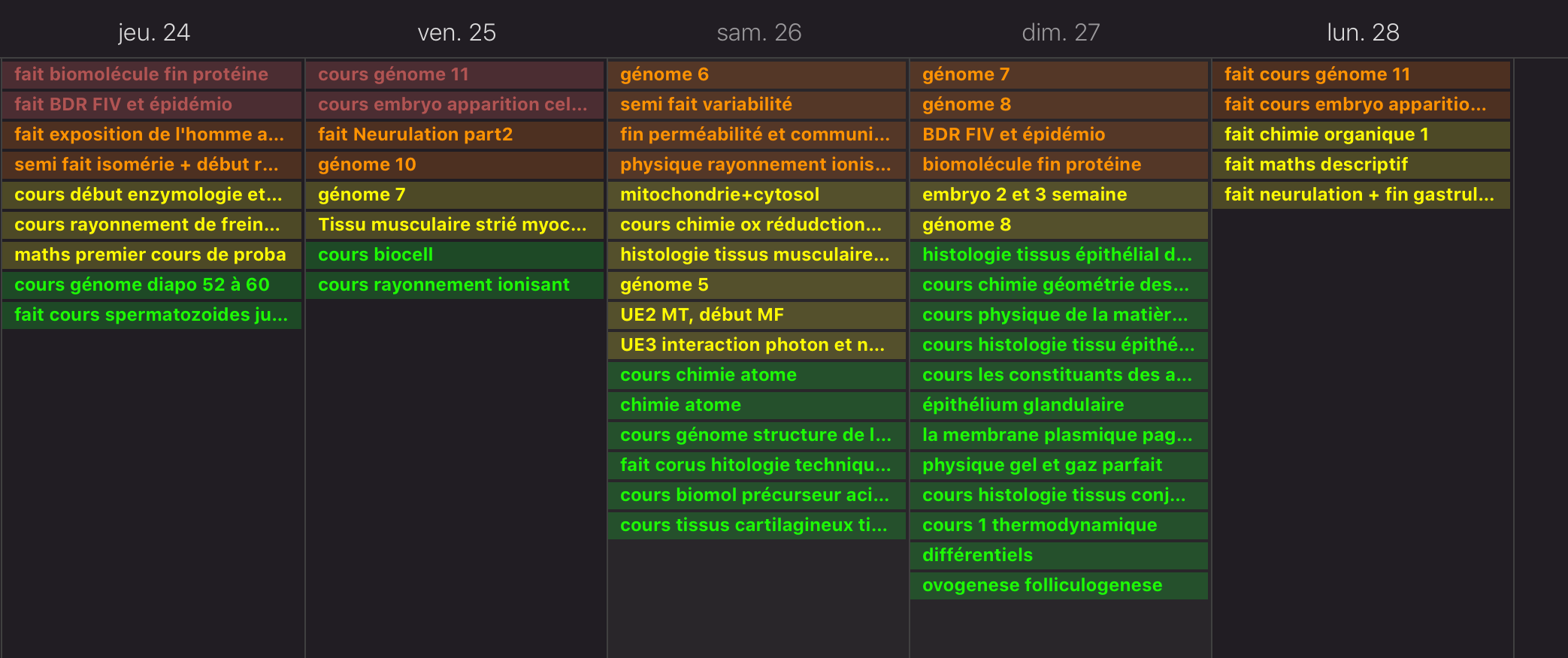 Ce serait apprentissage d’un cours + révisions de toute la matière le matin et on recommence l’aprem + annales ?voila un dimanche de paces