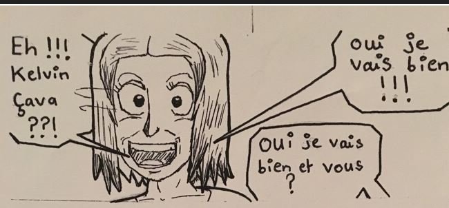 Les dialogues aussi, jamais de dialogues trop inutiles. Essaye de faire moins de fautes d’orthographe (« faites attention à vous ») (puis l’écriture aussi, essaye de faire quelque chose de moins arrondi, ce qui fait enfantin, surtout les points sur les i, faut jamais faire un rond passé la primaire).