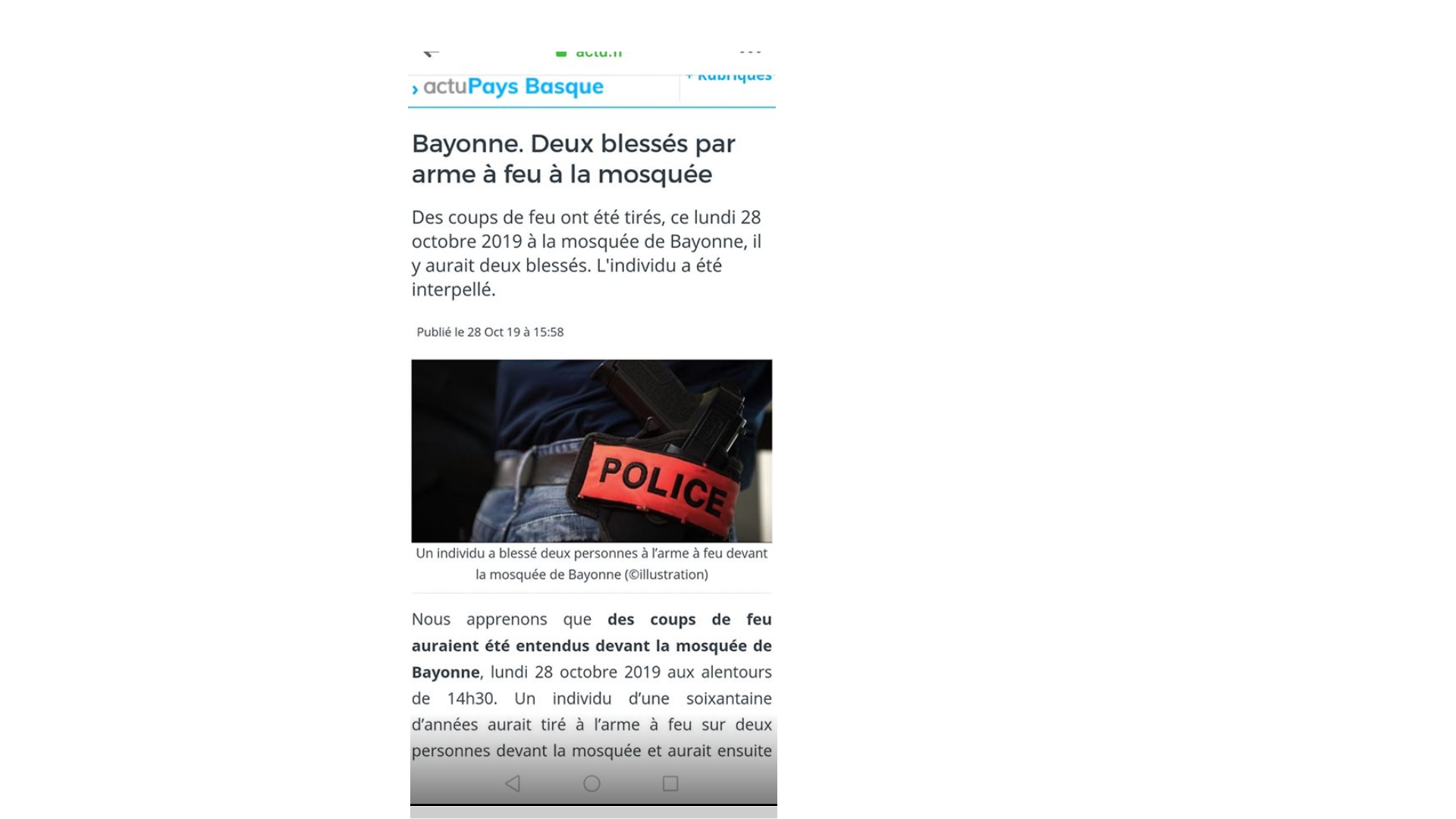 Alerte il y aurait eu un attentat à la Mosquée de Bayonne.