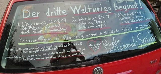"Il écrit toutes les conspirations sur la vitre de la voiture qui commence après le 3 novembre 2019. Le 3.11.19, une fausse bombe atomique sera lancée à Seattle. Le 9.12.19, Trump sera tiré avec deux balles. Le 14.1.20, l'électricité sera coupée en Europe pendant 2 semaines"