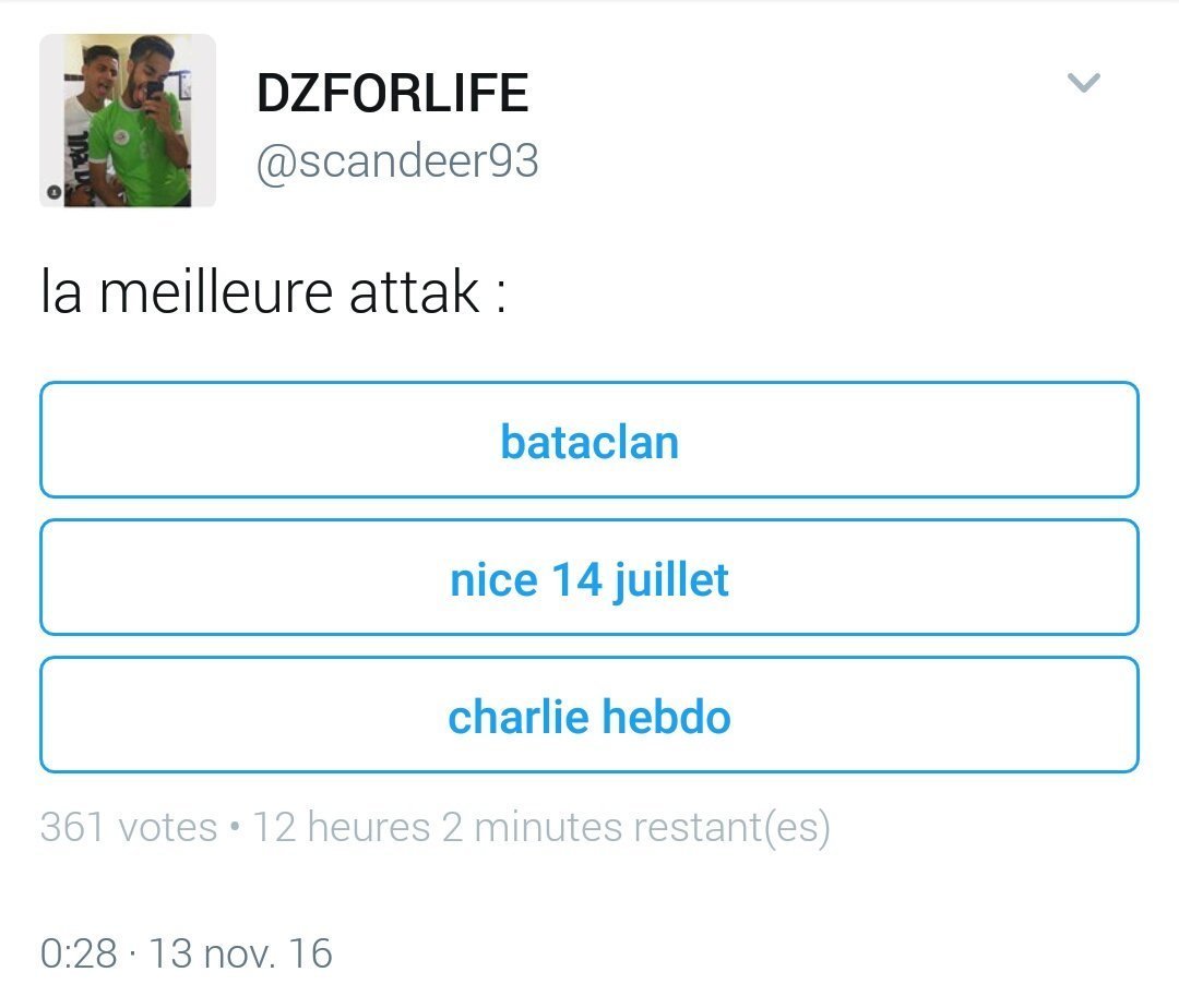 Est-ce que je dois ressortir les vieux screens de toutes les chances qui lors des attentats du 13 novembre 2015 ont dit "mérité" "tant mieux" sur twitter ou ça ira les gauchos ?MP stp
