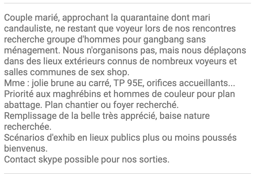 Sachez donc qu'il est quasiment impossible d'intéresser les couples sur ces sites...
