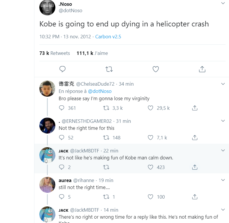 C’est pas une fierté de pas connaître une légende du sport, j’y connais rien au basket mais connaître Kobe Bryant c’est un minimumUn minimum pour quoi exactement ?