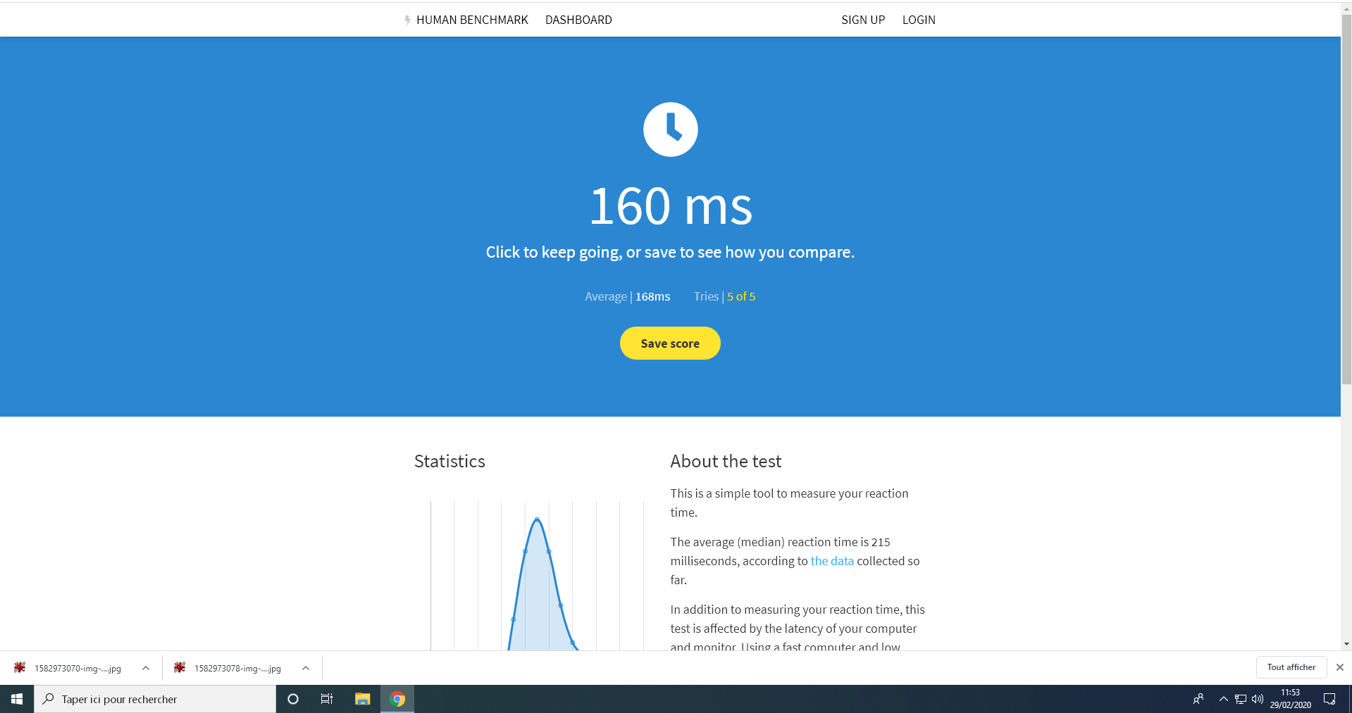 test ça l'op, j'ai pas une bonne memoire mais j'ai des bons reflex https://www.humanbenchmark.com/tests/reactiontime