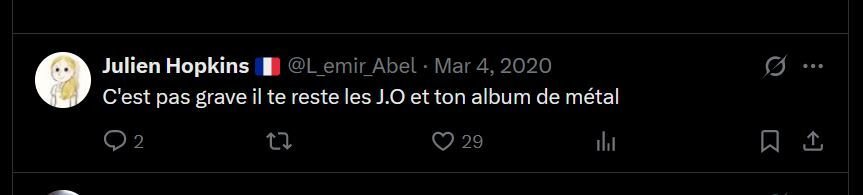 > > >> Le 27 avril 2025 à 19:07:20 :