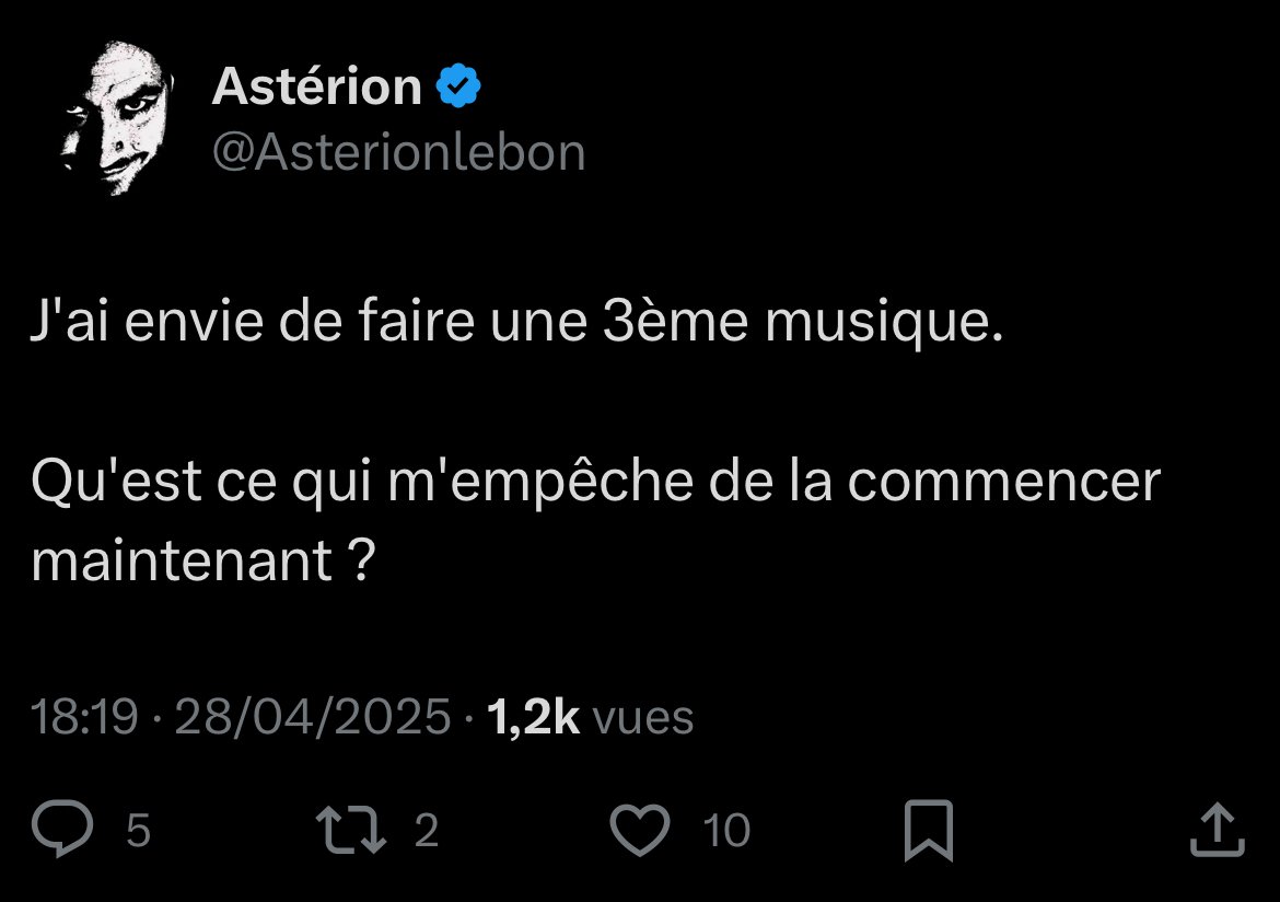 https://x.com/Asterionlebon/status/1915693809578426688Kirby Quesada nous fait profiter d'un extrait de sa seconde "musique"