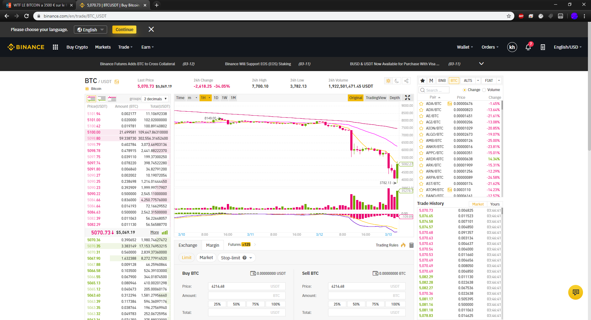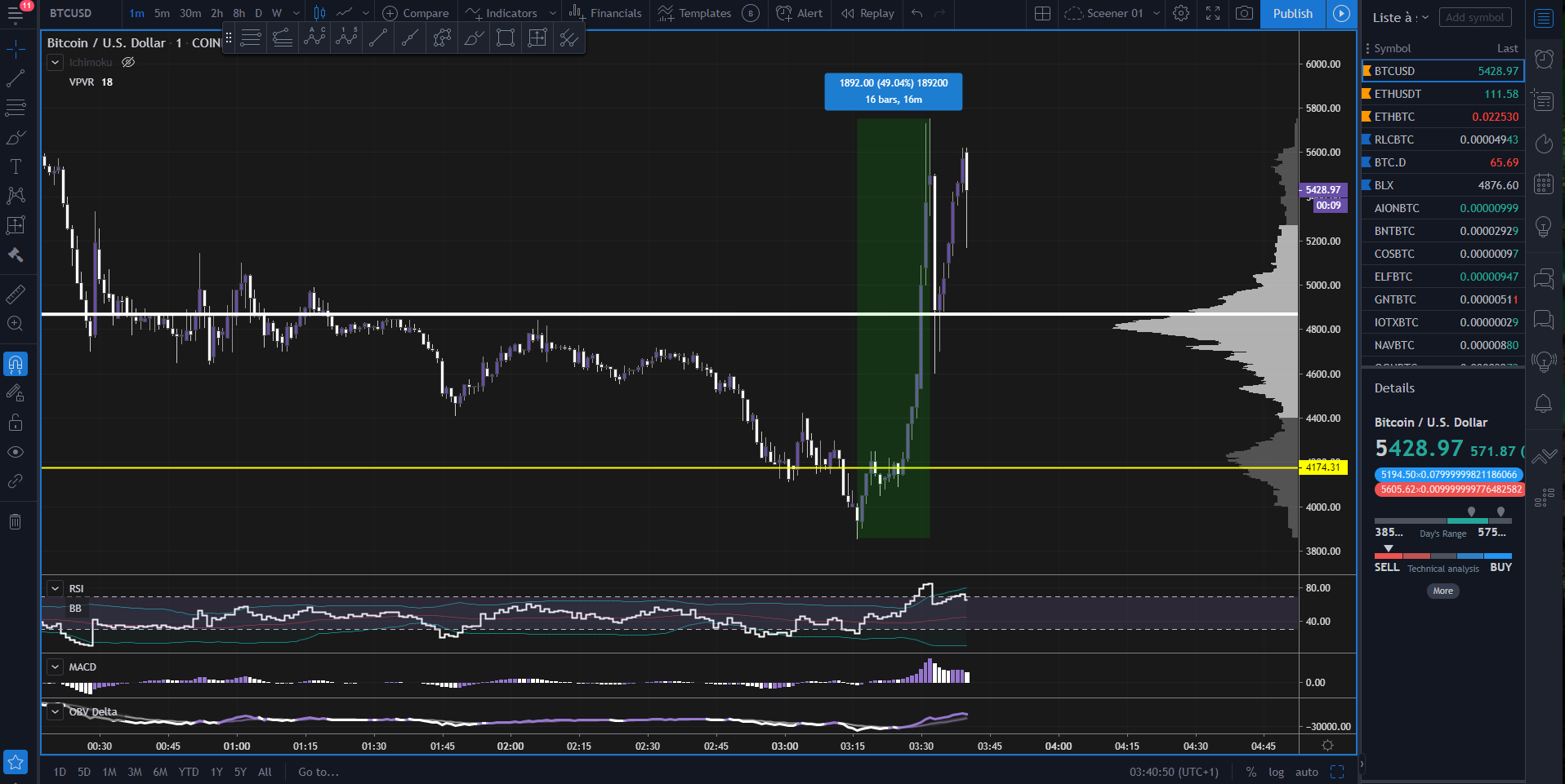 Le BTC qui viens de faire un +50% a la hausse en 7min en rebondissant sur le support historique de la dernière consolidation de début 2019, absolument incroyable cette volatilité-50%