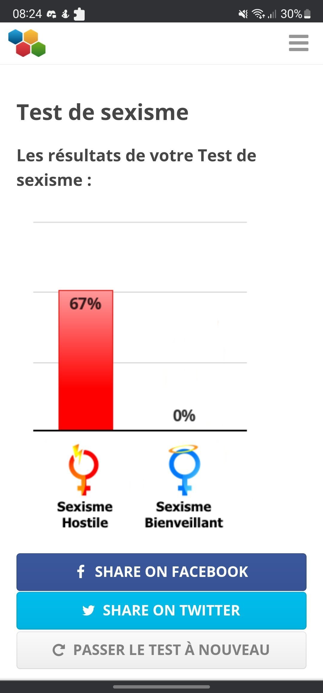 en gros, le test c'est si tu oses faire un reproche aux femmes, justifié ou non = sexistesi tu oses ne pas mettre la femme sur un piedestal = sexiste