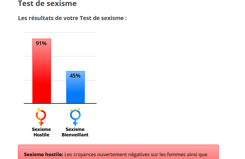 les stats son débile , car le sexismes bienveillant, c'est justement quand la femme est avantager par rapport à l'homme, donc loin de l'égalité d'un couple, la barre devrait être rouge aussi et le meilleur score serait 0% -0%