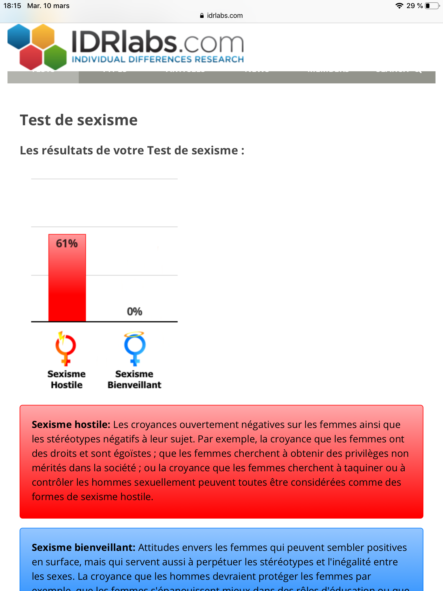 Flemme de faire le test mais oui je suis sexiste. A deux topics similaires donnés, l'un fait par une fille et l'autre par un garçon je vais m'investir dans celui de la fille, l'aider au mieux alors que je vais totalement ignorer celui du garçon.