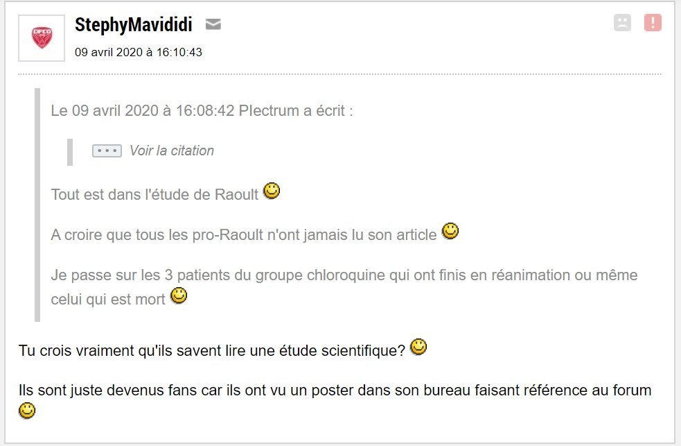 Il parasite totalement cette crise et les VRAIS scientifiques qui bossent dans leur coin et PONDENT de VRAIES études SOLIDES.