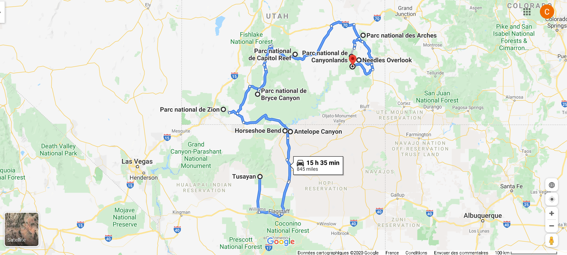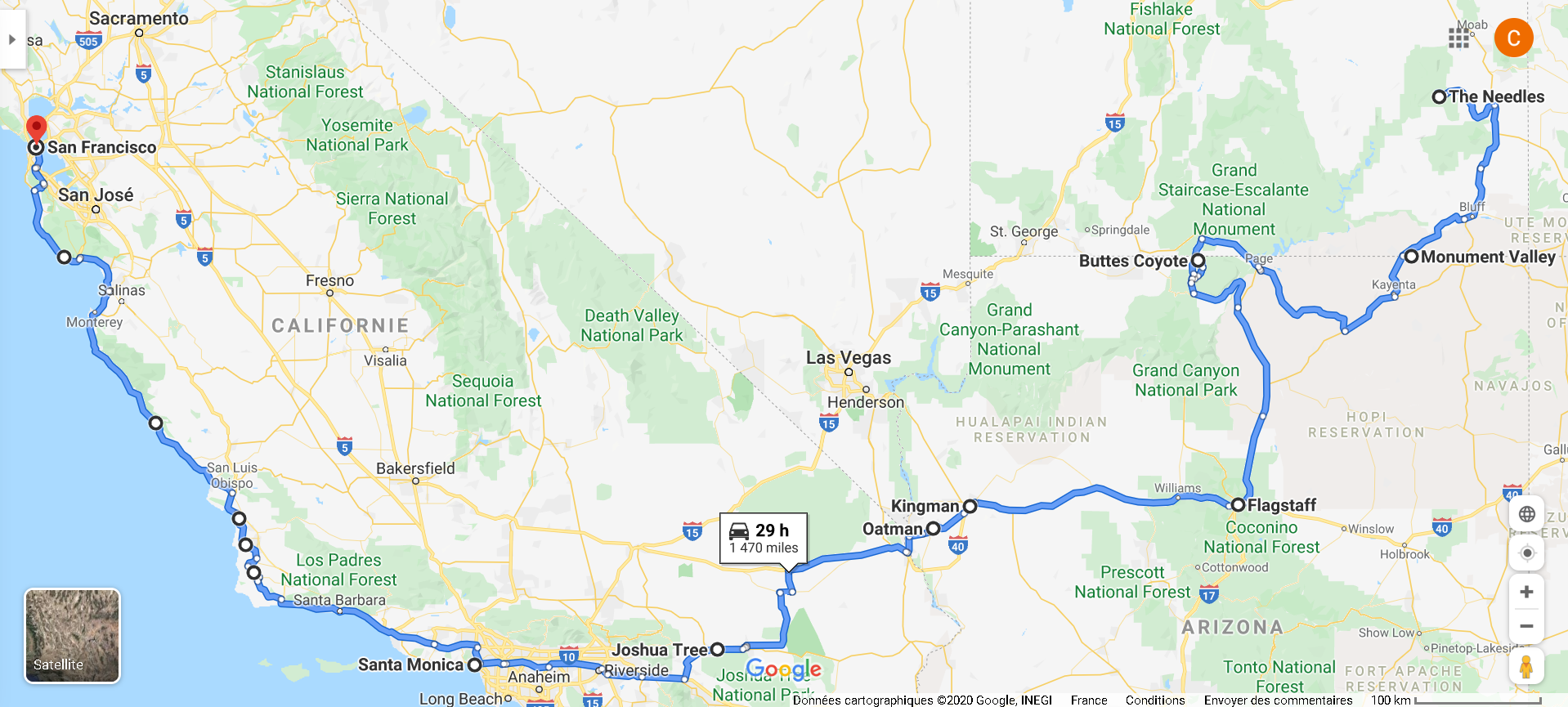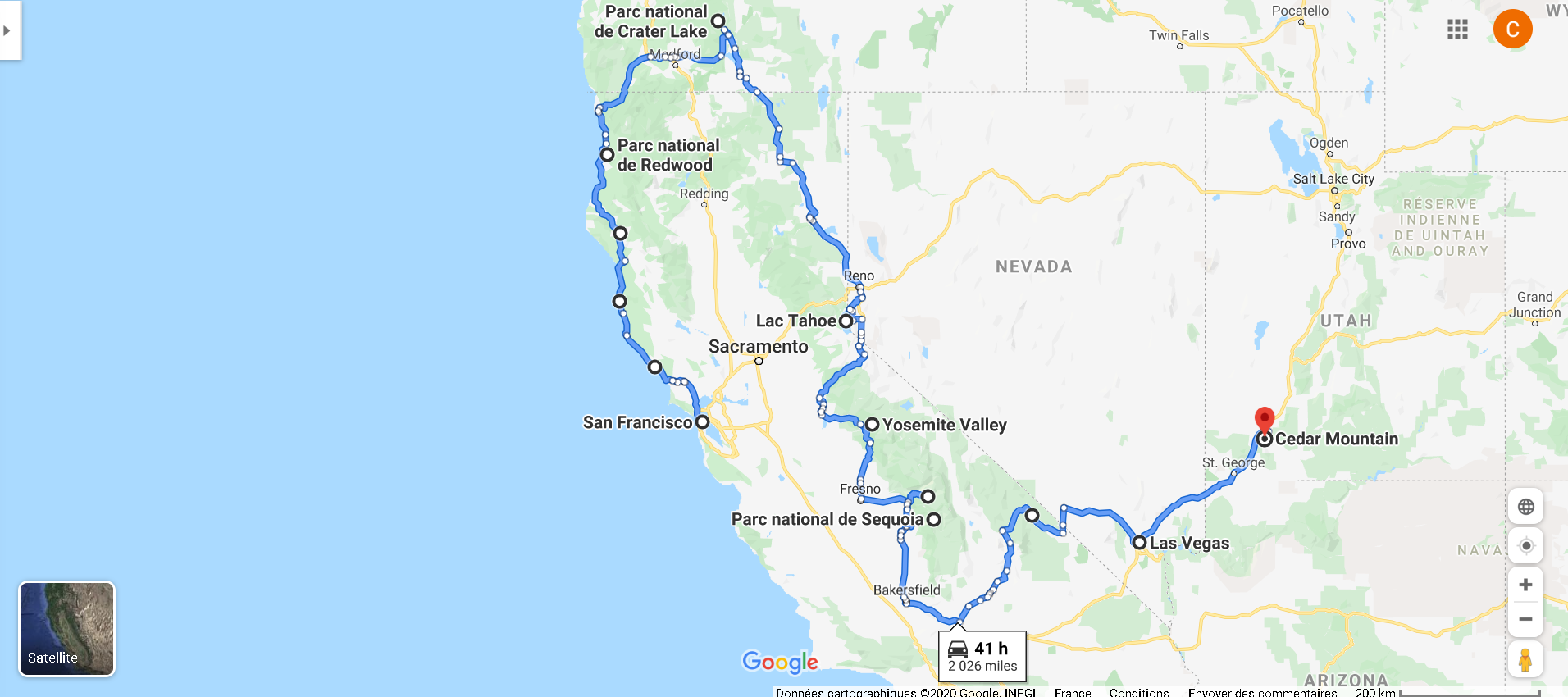 Je vous propose un parcours que j'ai fait en 3 mois aux Etats-Unis, réalisé en 2016, du 13 Février au 10 Mai.
