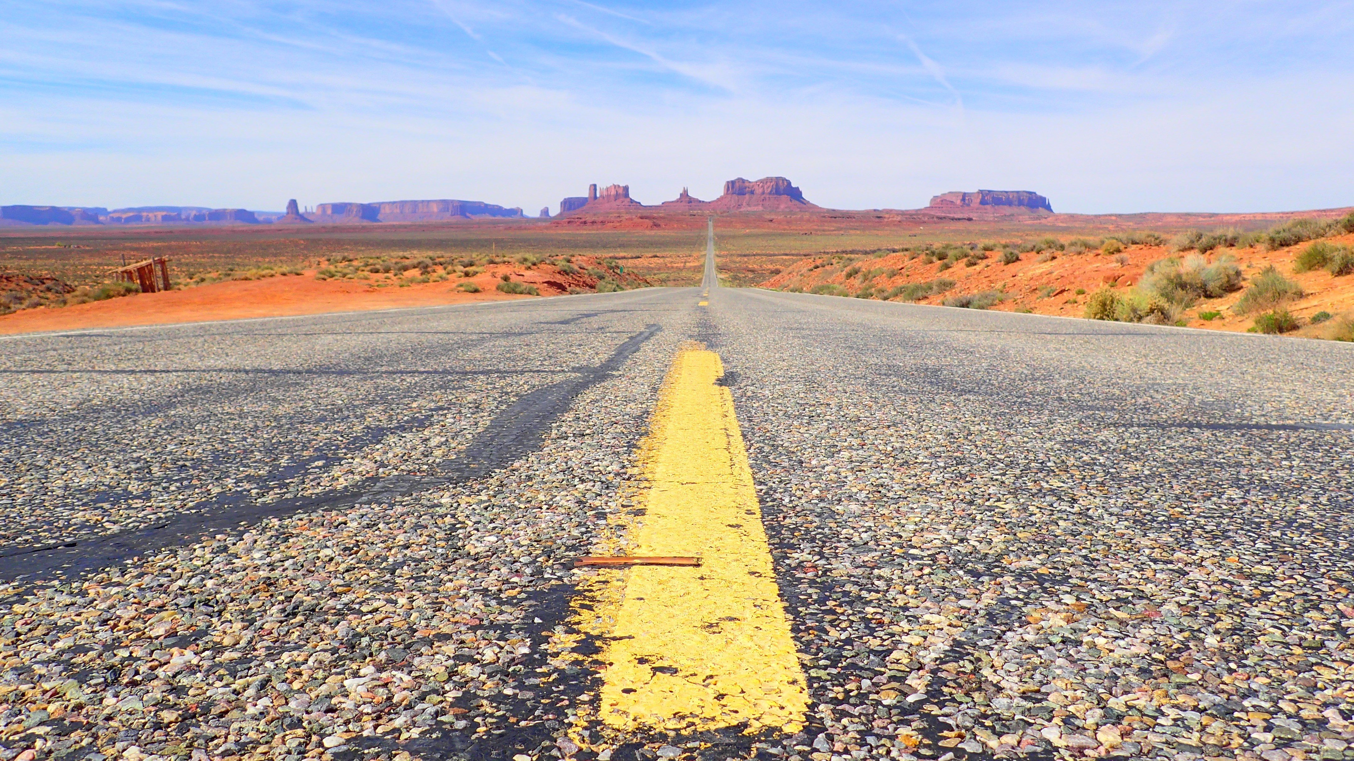 Je traçais pour voir le coucher de soleil sur Monument Valley, et une voiture de police qui arrivait en face me croise. Je la vois faire un gros burn dans mon rétroviseur, foutre ses gyros, et me coller au cul en 2 secondes. J'étais livide, je me voyais déjà en combi orange à négocier des turlutes en zonzon. Le flic arrive avec ses lunettes de soleil, la grosse moustache et le chewing-gum, affalé sur ma portière "You know why I'm here ?" Avec un accent dégueulasse "Euuh ... euh ...