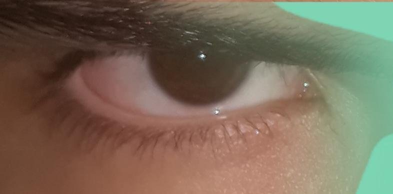Yeux vraiment foncé a la limite du noir sur la photo, tu baisse les yeux ce qui laisse apparaître t'es paupières et qui te donne air fatigué, tu as également l'air d'avoir de petit yeux mais sans doute encore une fois dû au faîte que tu baisse le regard. Je te donne la note de 6/10 et non pucix a vie