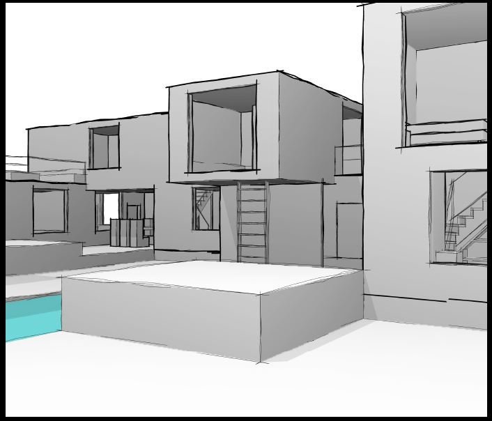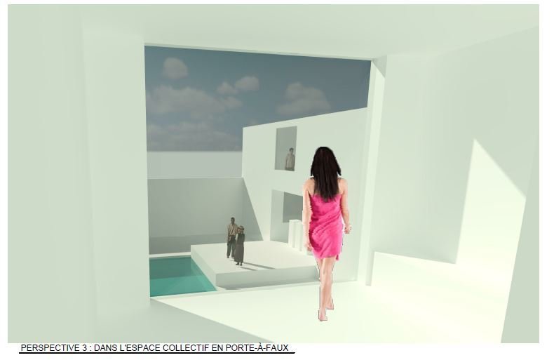 Sinon moi j'ai fait un immeuble de logement en espagne, c'était un gros projet, de 70 par 80m, et en terme de perspective j'avais pondu ça :