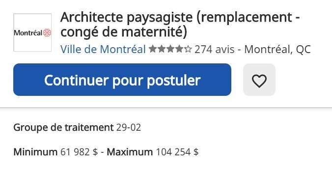 Trop tard pour éditer, du coup, voici une capture d'une offre d'emploi pour architecte paysagiste sur Indeed.