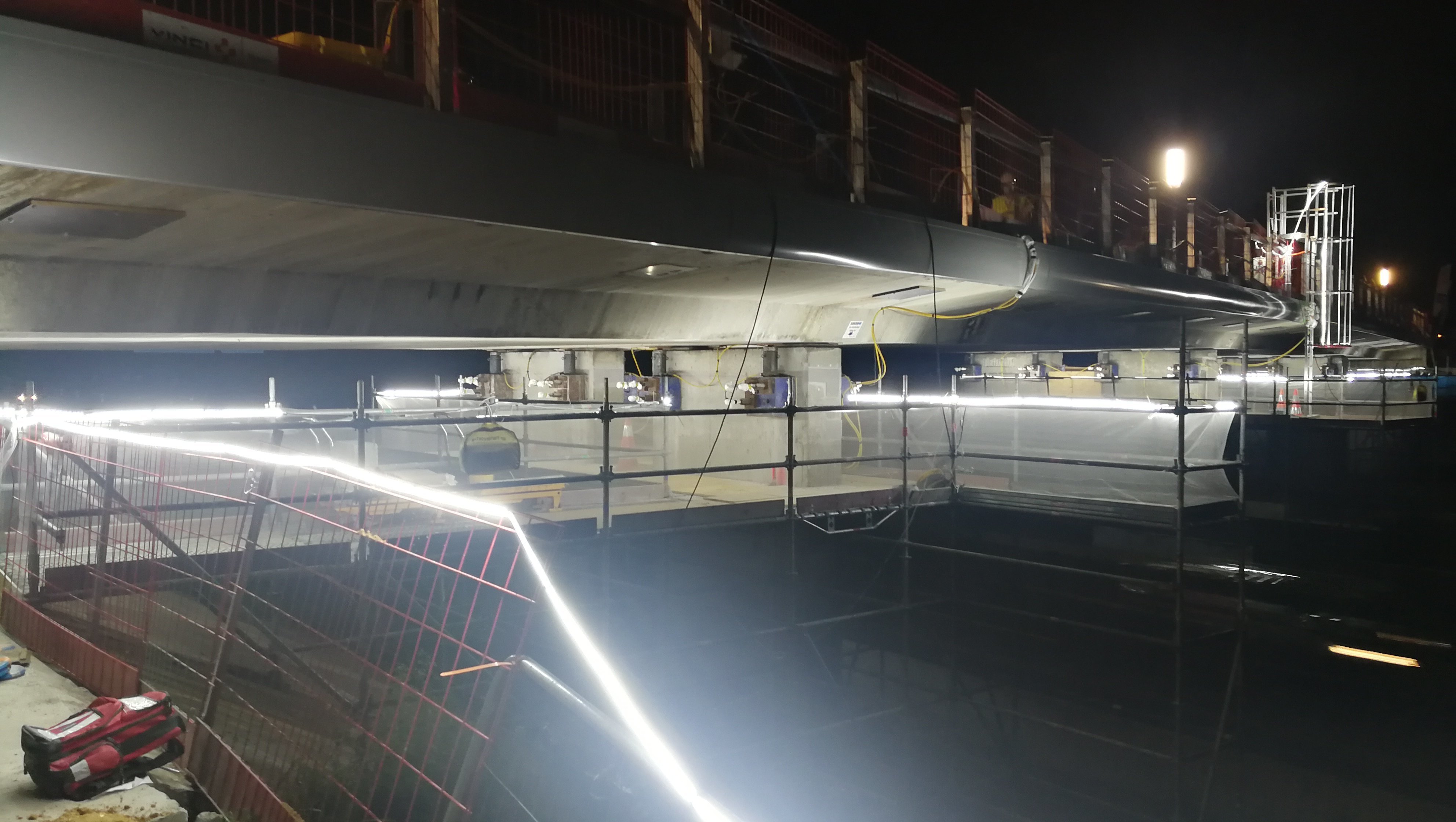 Je reviens d'un verinage d'un pont au dessus d'un autoroute en service.