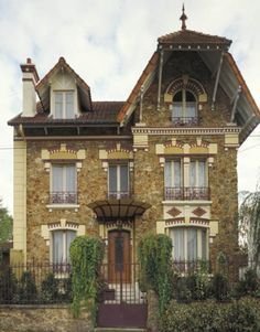 Je ne pourrais pas te sortir un style en particulier. Mais on fais facilement le lien avec les maison en meulière construit à la fin du XIXe siècle, que l'on retrouve en masse en Île-de-France. Des maisons largement inspirés du mouvement Art&Craft et de l'Art nouveau en générale.