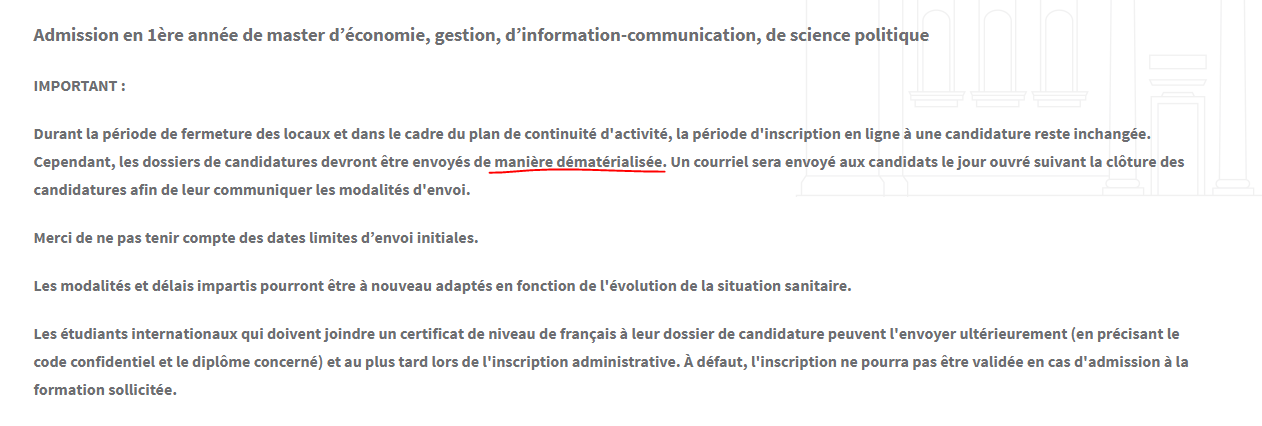 Pour Assas c'est indiqué nul part que la procédure de Master est dématérialiséeIls ont effectivement raisons, après les envoyés où, j'en ai aucune idée sachant qu'il reste 3 jours.