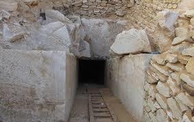 Le sarcophage est brisé car la chambre funéraire était effondrée et a été restaurée à partir des années 1960. Même en parfait état, ce n'est pas un sarcophage normal : trop petit (seulement 1 mètre de haut), forme irrégulière malgré un polissage achevé, le sarcophage peut donc être considéré comme achevé.