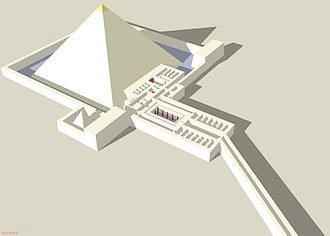 Reconstitution de la pyramide et du temple funéraire du complexe funéraire de Niouserrè, Ve dynastie, plateau d'abousir.