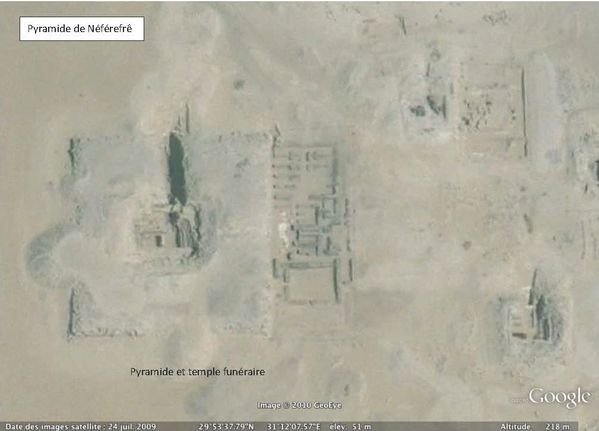En bas à droite : Pyramide Lepsius XXIV, datée du règne de Niouserrè, une momie y a été trouvée, femme dans la vingtaine, jamais eue d'enfant, peut-être épouse de Niouserrè, Repoutnoub.