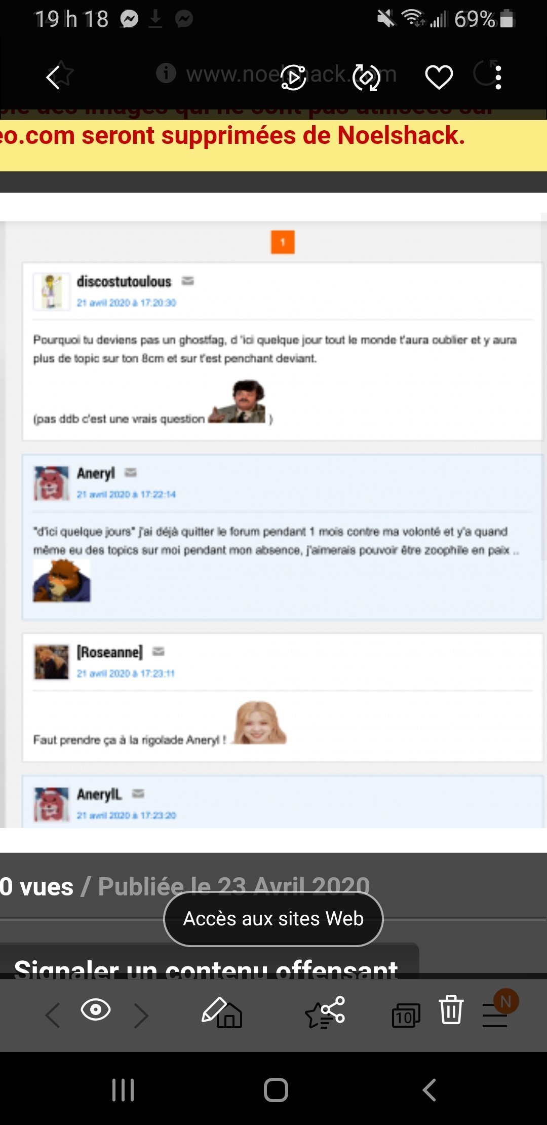 Depuis qu'aneryl/erydn est là, c'est de la grosse merde . Ça volait déjà pas très haut mais depuis son arrivé le forum s'est carrément crasher , grâce à lui j'ai pu comprendre que la modé est pourrite jusqu'à la moelle , comment on peut être assez inhumain pour protéger un mec comme Bertrand bordel ? Je savais déjà depuis belle lurette que les modos/admins étaient pas net mais franchement ça c'est la goutte d'eau qui fait déborder le vase. En ce moment j'hésiste entre sois tout faire pour qu'il se barre ou juste me barrer moi même . Ce mec passe littéralement sa vie sur le forum à étalé ses déviances sur le forum et à passé des commentaires aussi vide qu'insipides et j'ai l'impression qu' chaque fois qu'un de ses comptes va tombé, il va revenir avec un autre compte 2 jours plus tard avec une nouvelle déviance .Bref maintenant c'est ça le 18-25 , un mec pedo zoophile qui peut poster ce qu'il veut car protégé par la modé et si on ose essayer de faire éclater la vérité on se mange un ban en pleine gueule. Le pire c'est qu'on dirait que même Gilbert en a rien foutre car même en le signal gouv il se passe rien. Donc ouais ce forum c'est de la belle grosse merde
