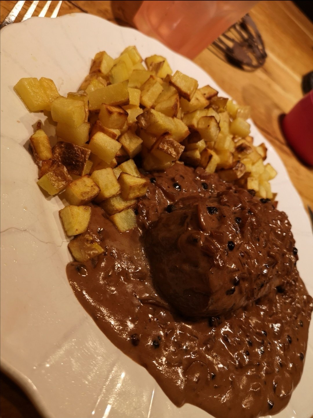 Alors ce soir c'était filet mignon d'agneau avec sauce au poivre de tasmani, et pomme de terre Bio rissoléesPas mal khey mais ton fond de sauce est maison ?