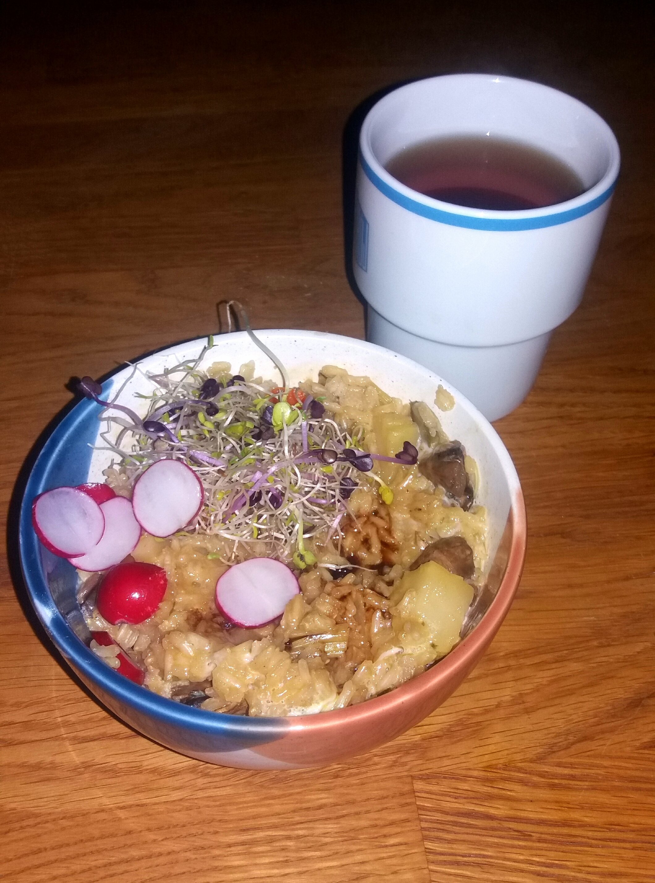 Tu laisse cuire environ 30 minutes à feu doux couvert puis tu ajoutes petits pois et herbes