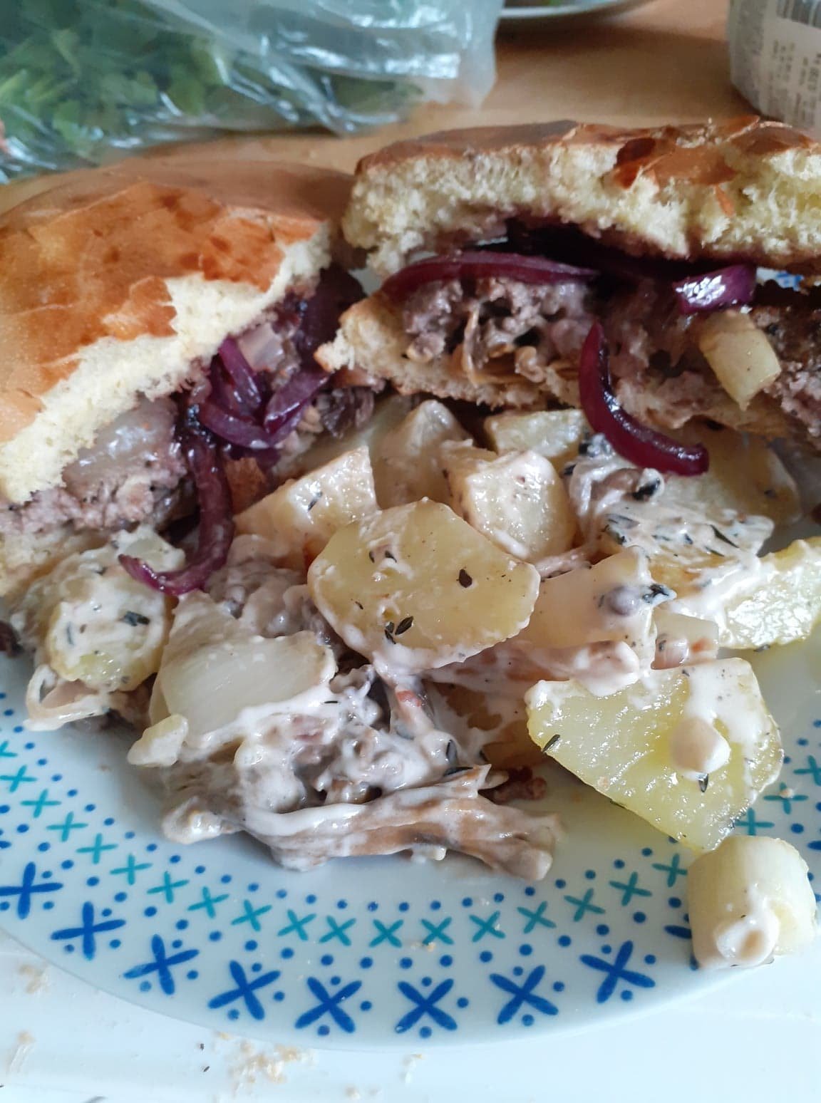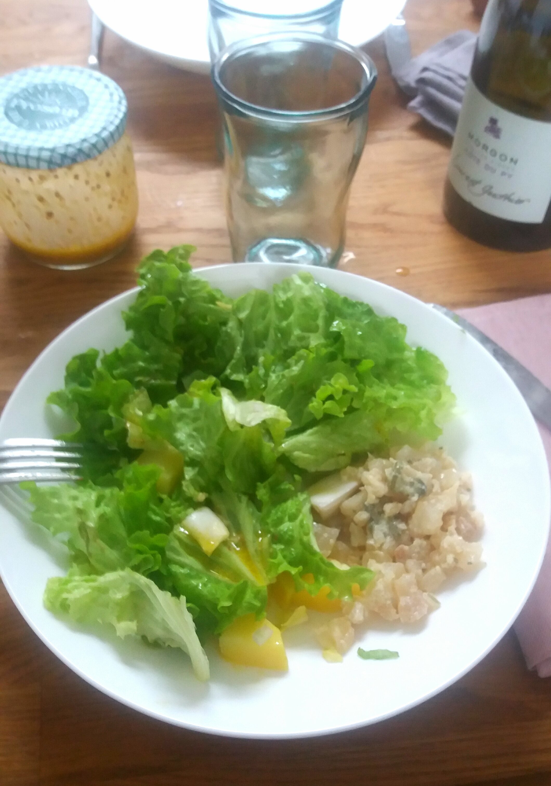 Déjeuner d'hier : salade de pieds de veau et salade verte avec des endives et de la pomme de terre