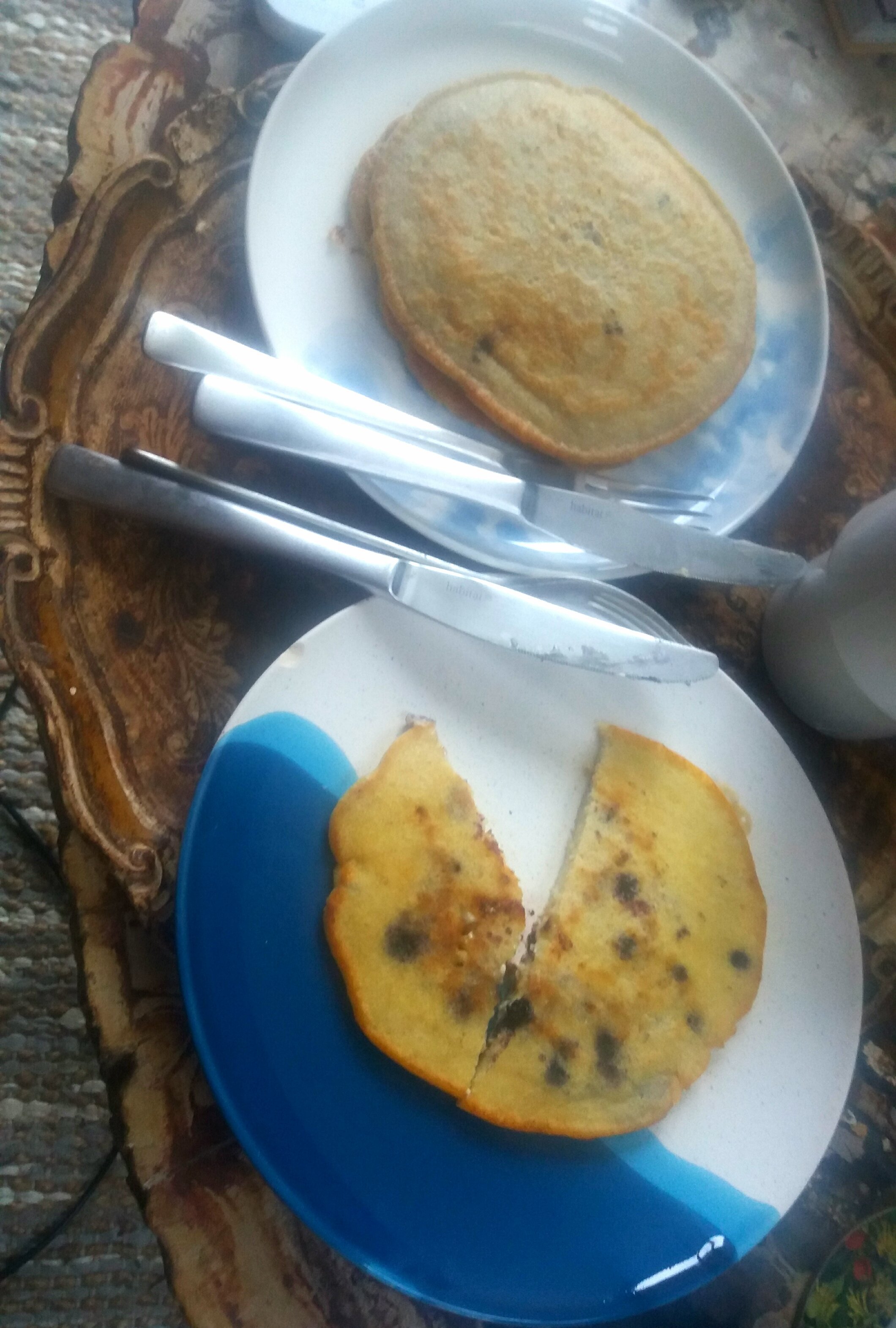 Ce matin des pancakes aux myrtilles et chocolat blanc