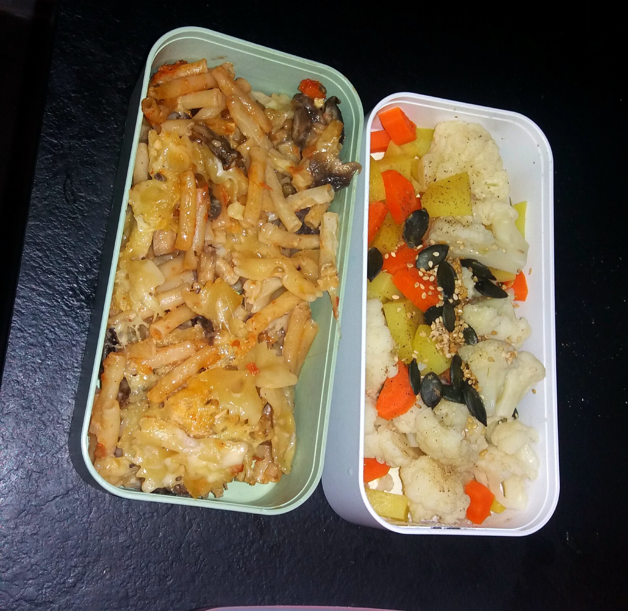 Pour demain : reste de pâtes aux champignons et légumes vapeurs