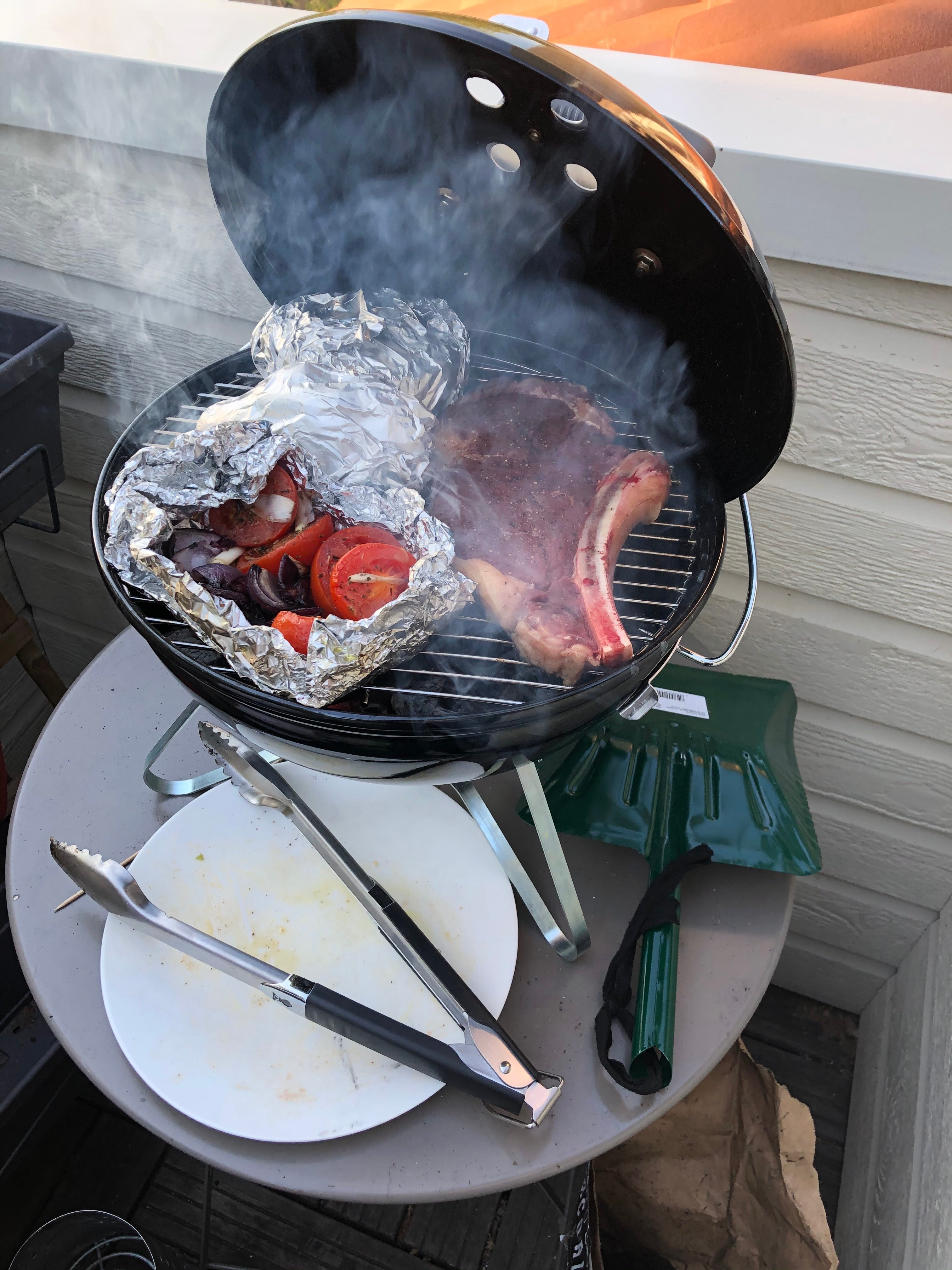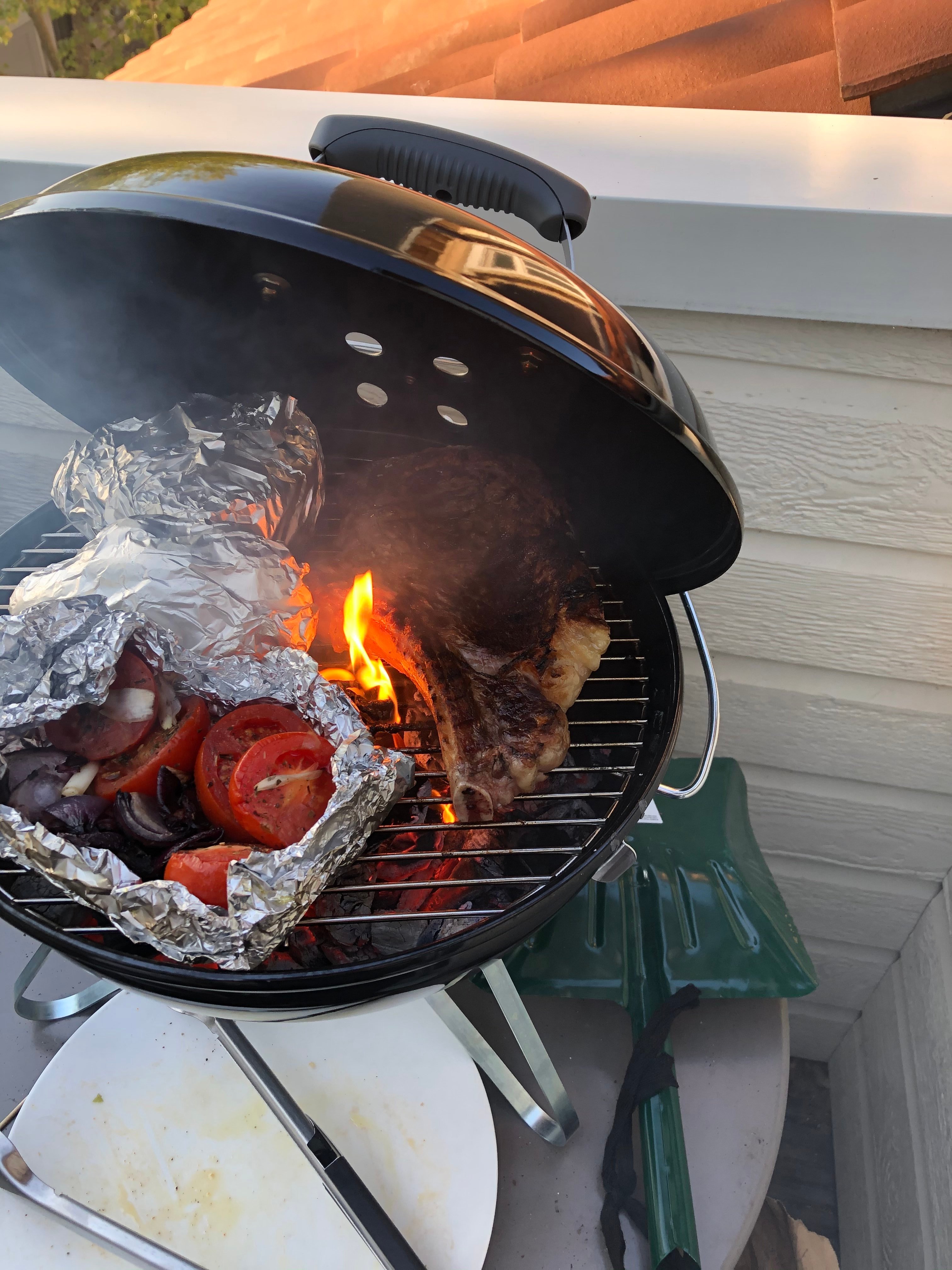 Ce soir re barbecue mais avec une cote de bœuf au sel