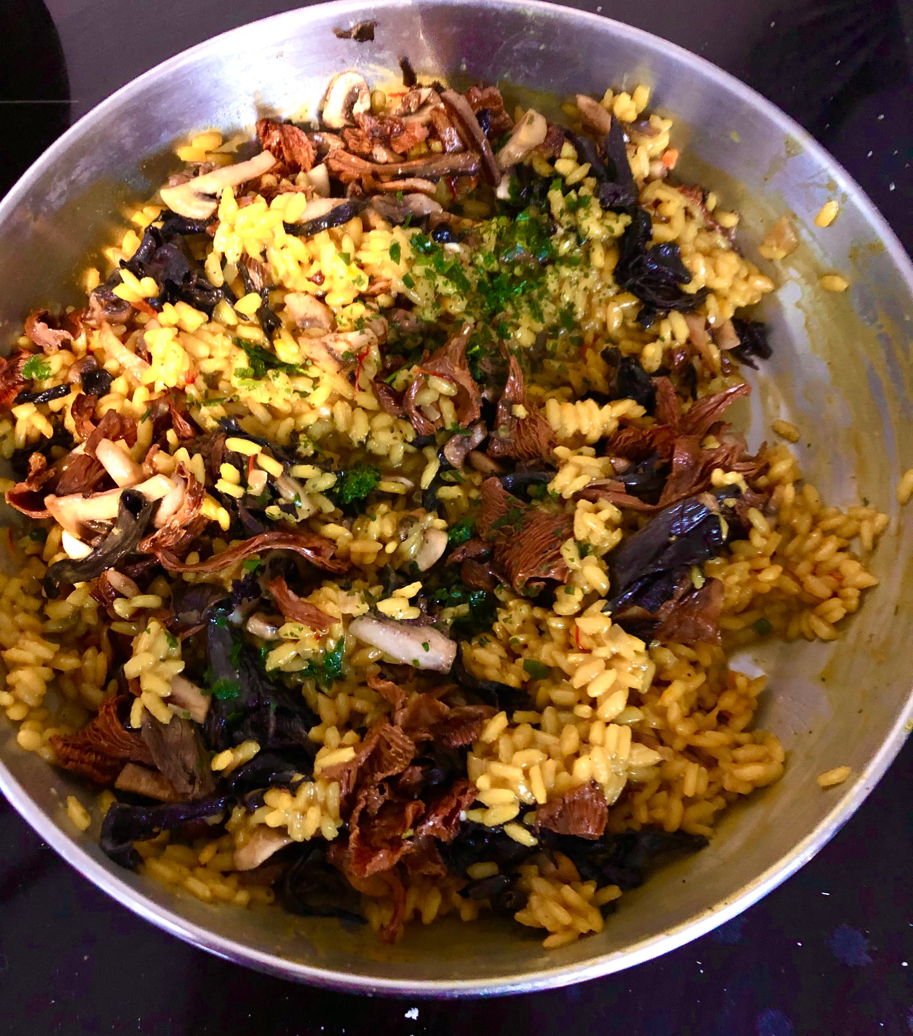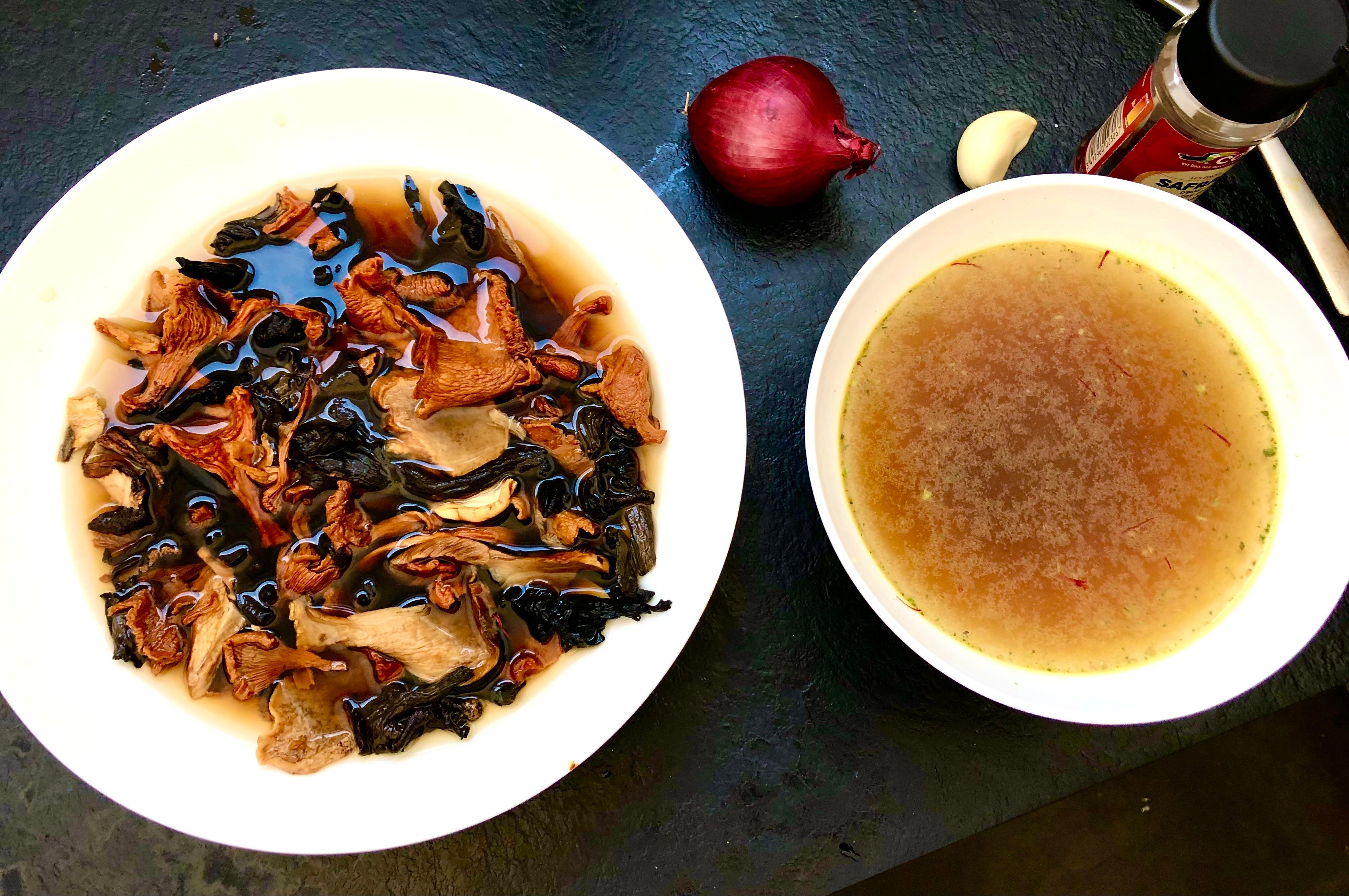 Ce soir je fais infuser du safran dans un bouillon de légumes et j’ai mis des champignons séchés de cet automne à tremper pour faire un risotto. Je vais peut être ajouter de l’huile de truffes mais je crains que il a fasse un peu trop de goûts mais