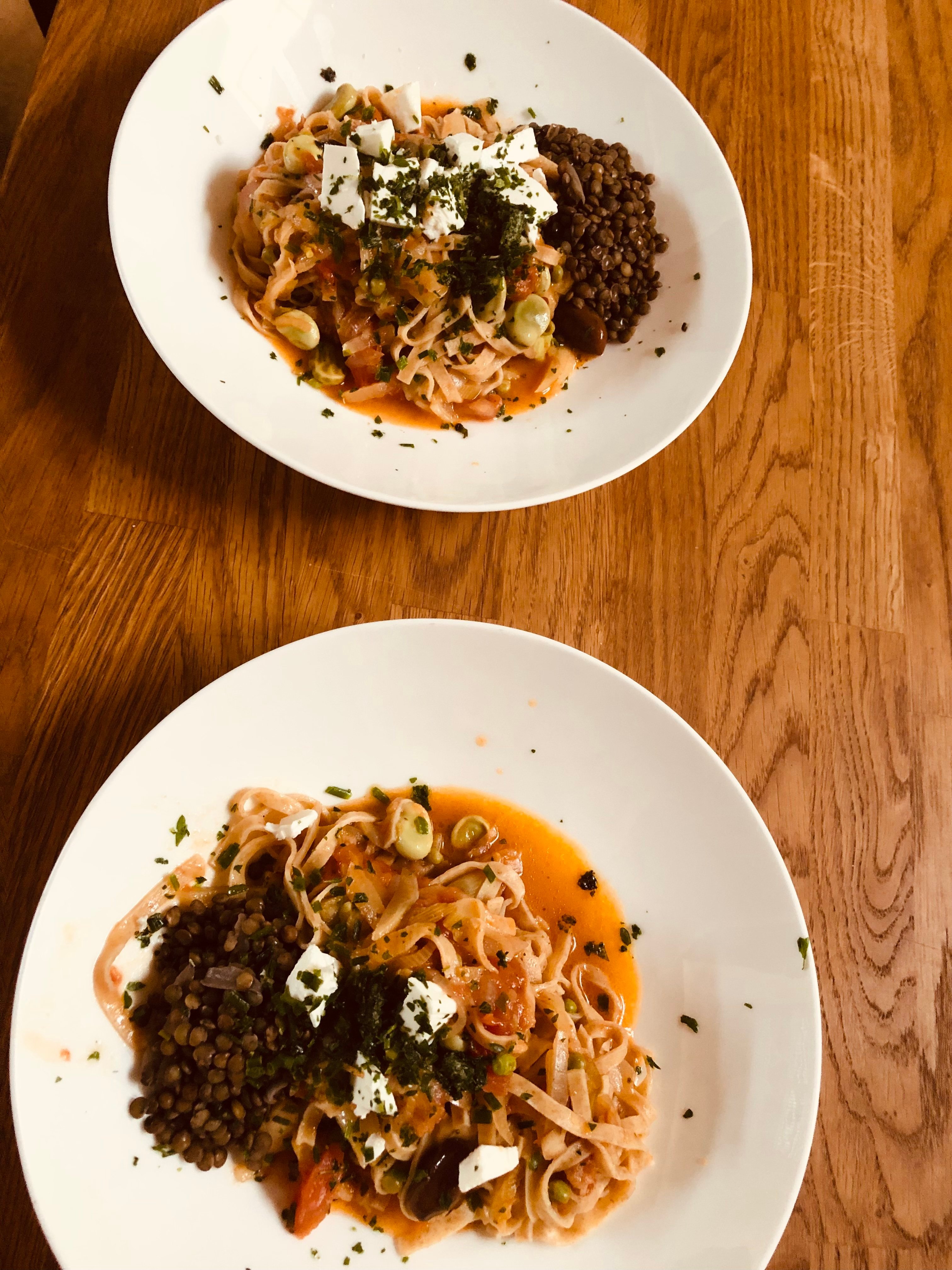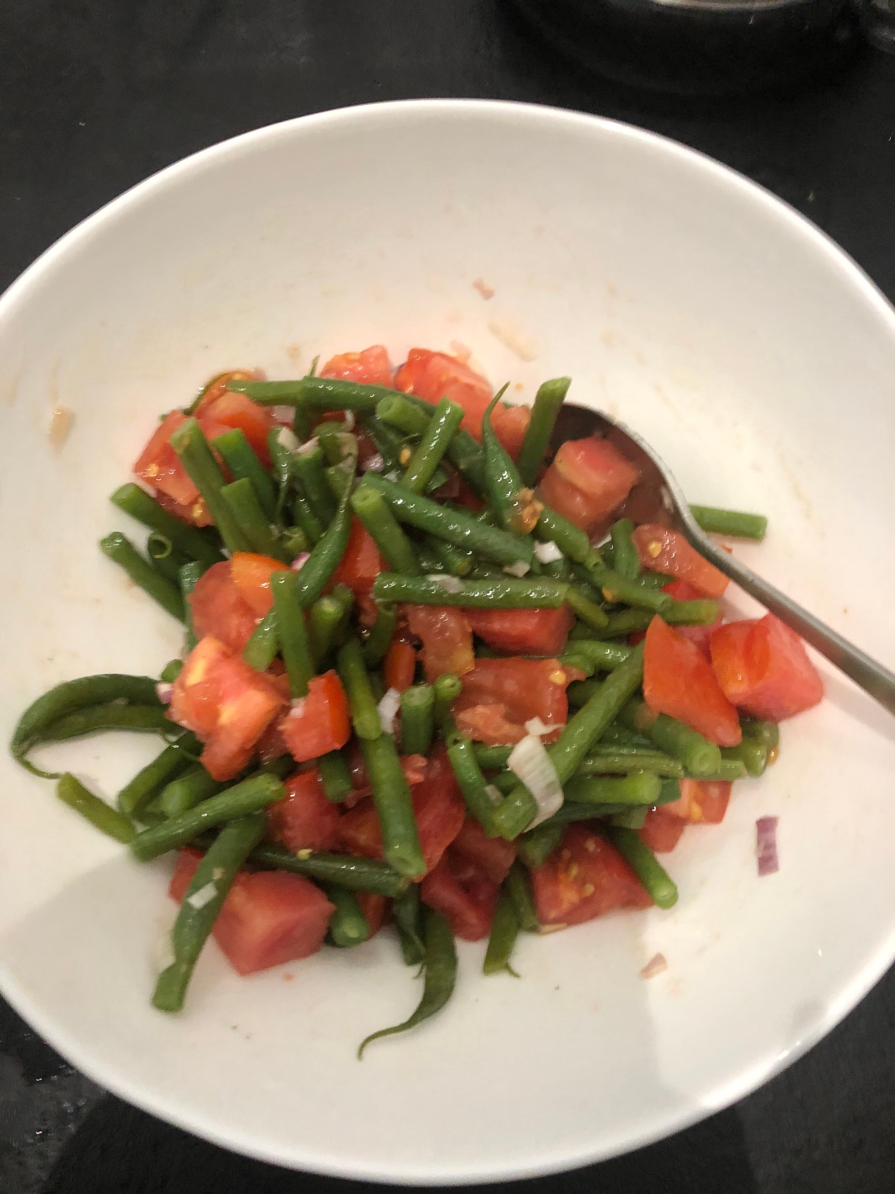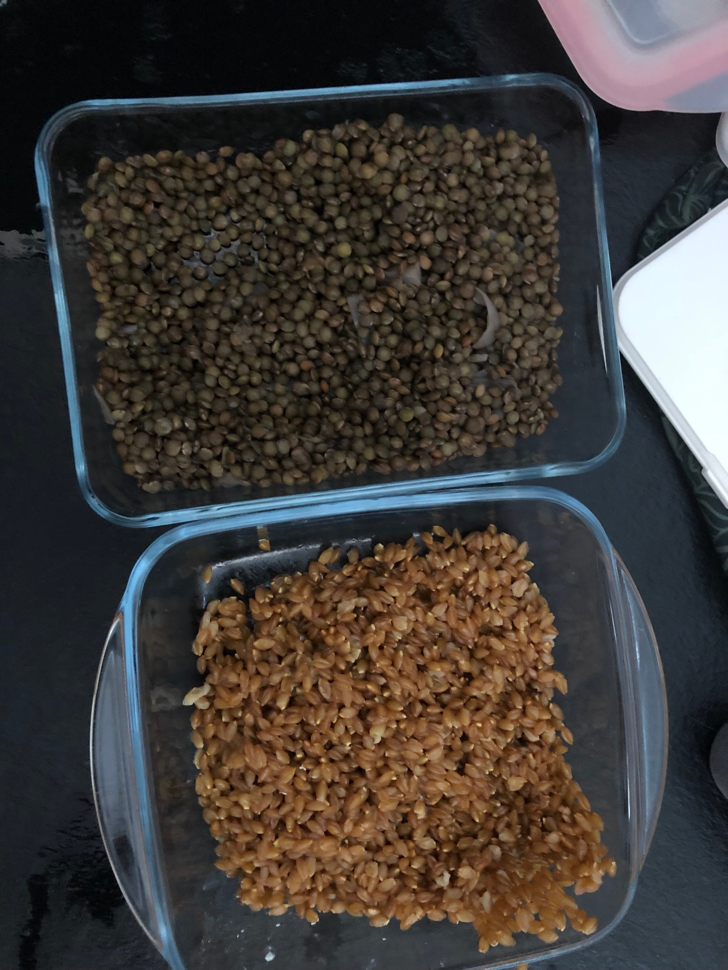 Ce soir : salade de lentilles corail, avec du concombre , fruit de la passion , coriandre , citron vert, piment , et les fameuses feuilles d’aster marine .