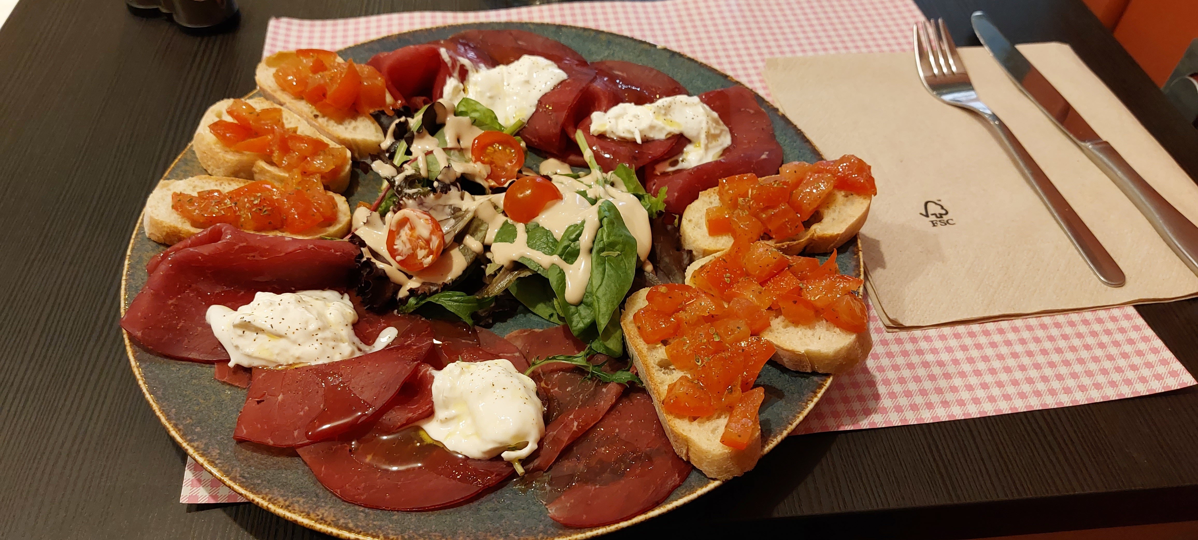Le 03 juin 2022 à 20:43:14 :Carpaccio di bressaola,toast tomates confites ,burrata, roquette sauce parmesan