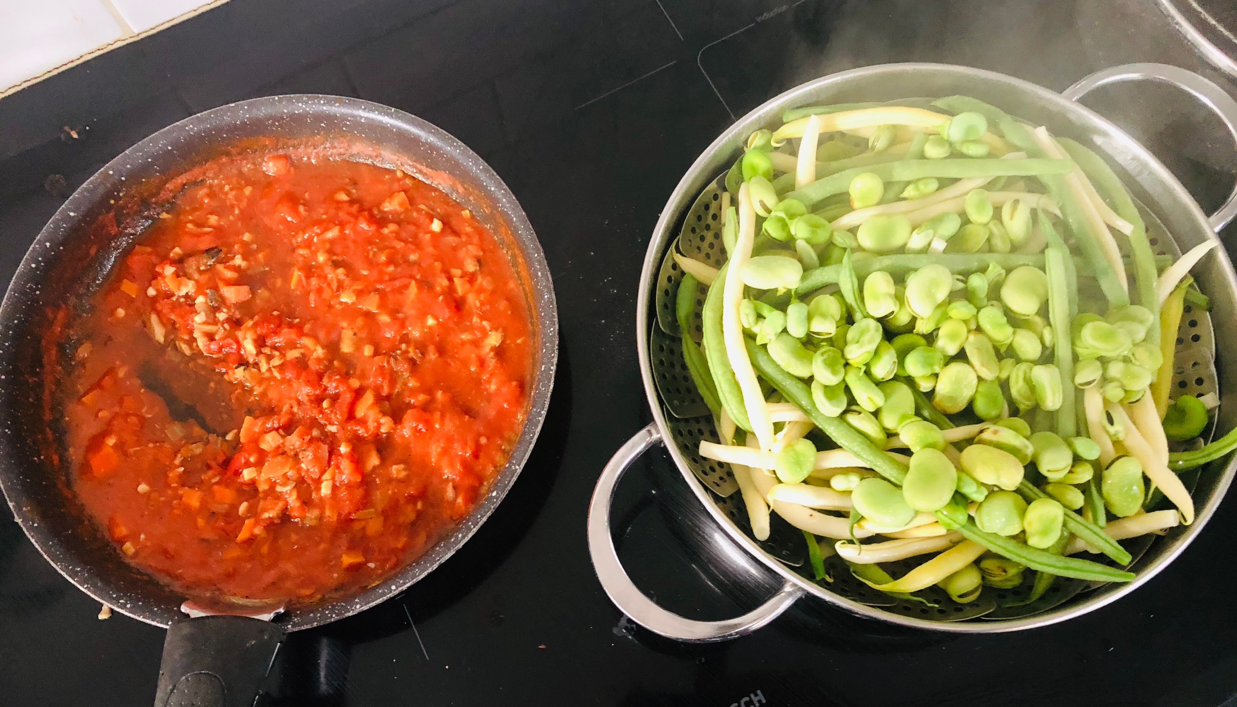 Sauce tomates aux sardines et haricots et fèves à la vapeur