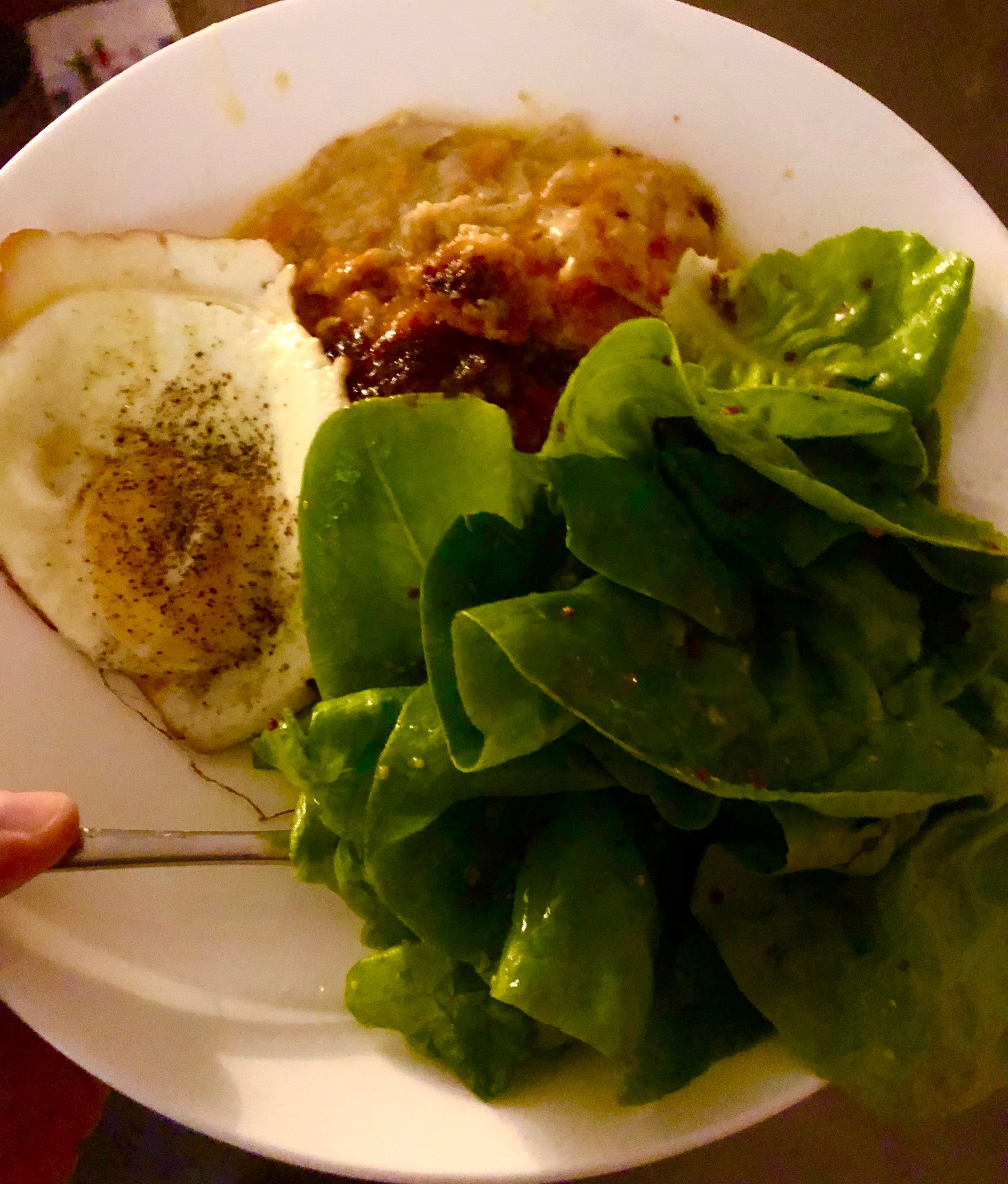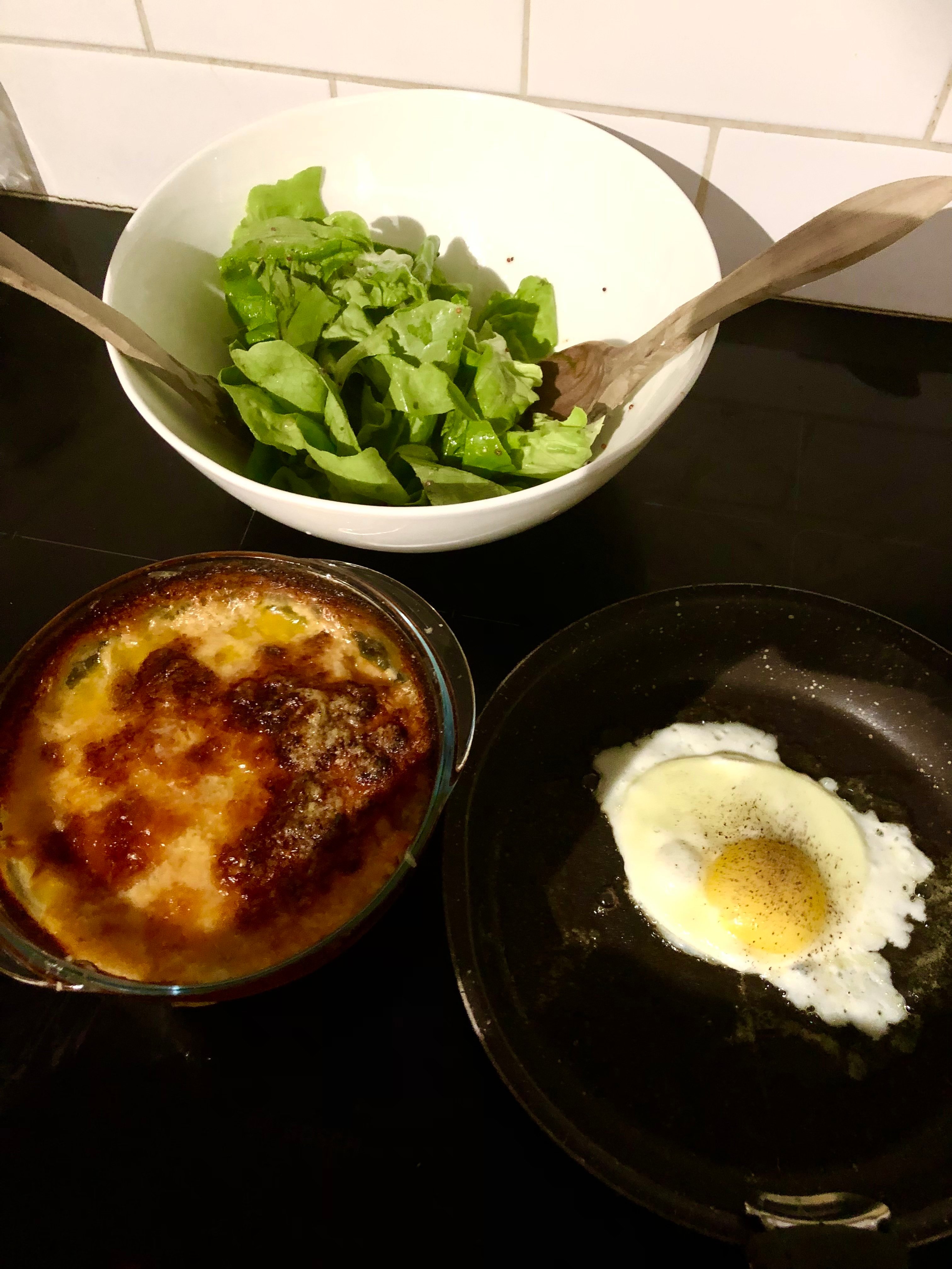 Ce soir gratin de patate douce et de fenouil avec salade verte et œuf au plat