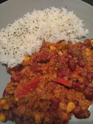J'avais la flemme de cuisiner du coup pour moi c'est chili préparé à l'avance + ce qu'il reste de riz vu que j'ai fait une salade pour ce soir![]()