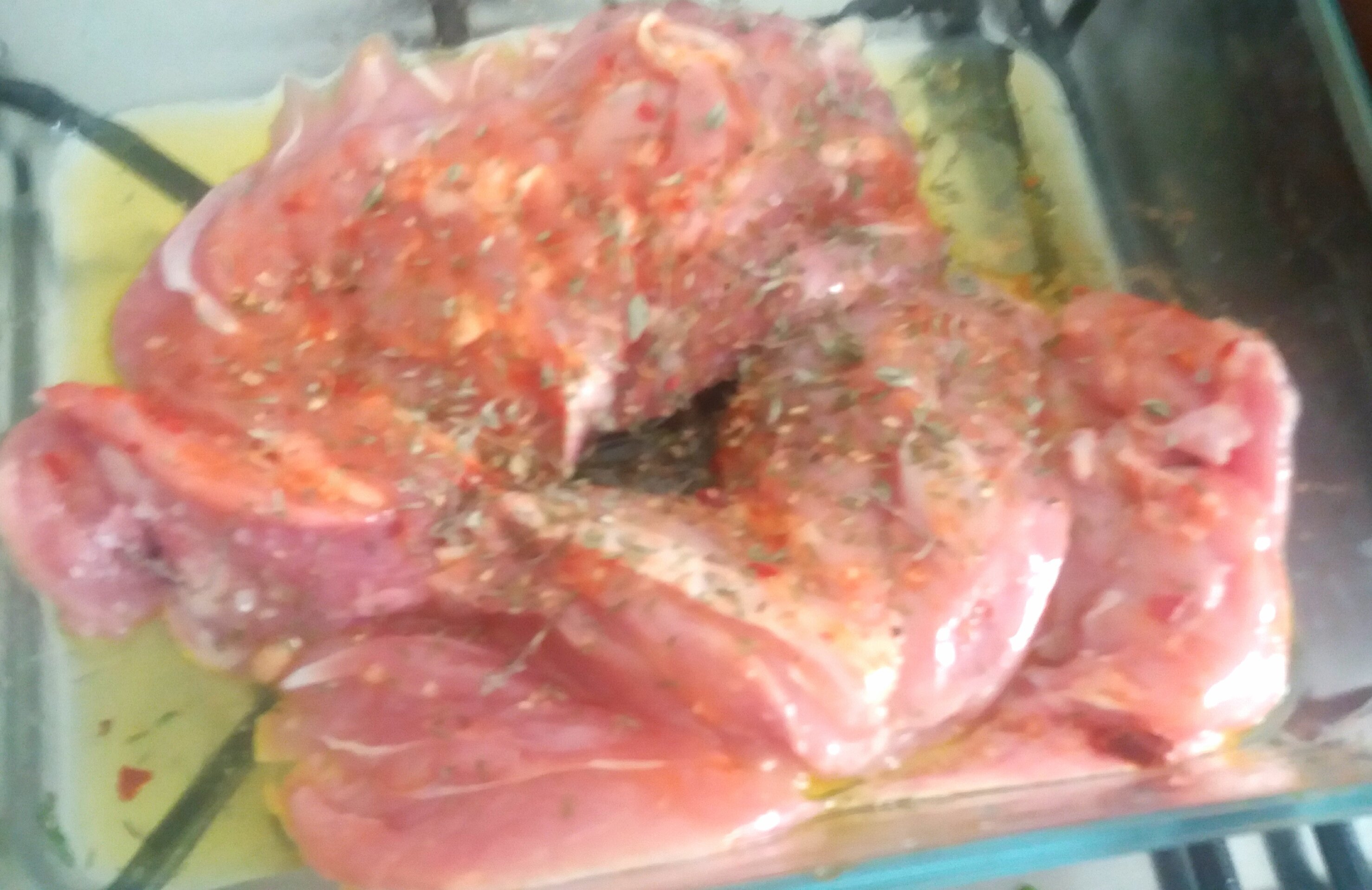 J'ai mis le poulet Ă mariner avec de l'huile du citron des herbes de la harissa